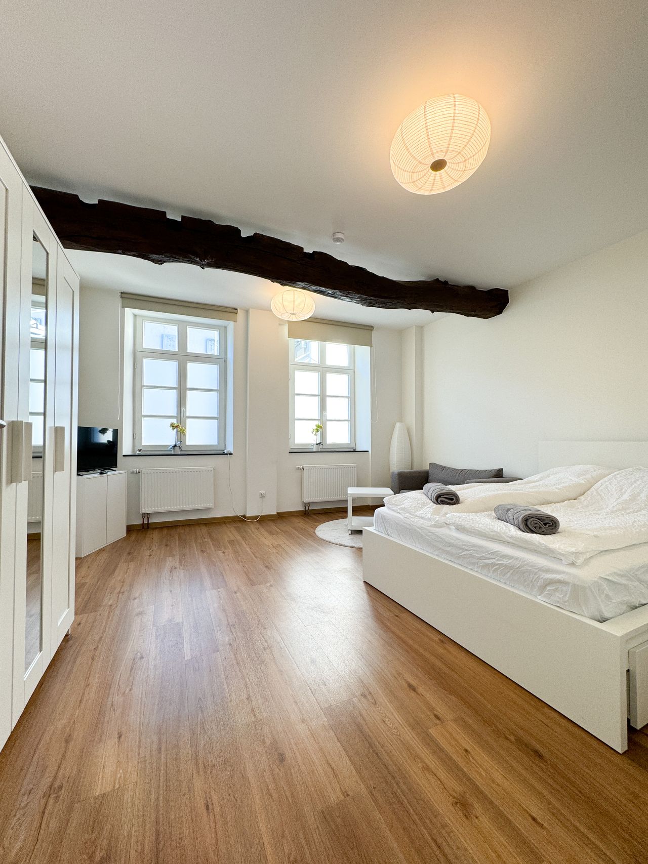 We welcome you to our apartment in Stolberg! Our lovingly furnished apartment with its own fully equipped kitchen is located on the first floor of a four party house. It was completely renovated and modernly designed in 2022. The apartment offers space for 2-3 people. Feel free to contact us regarding a long-term rental.