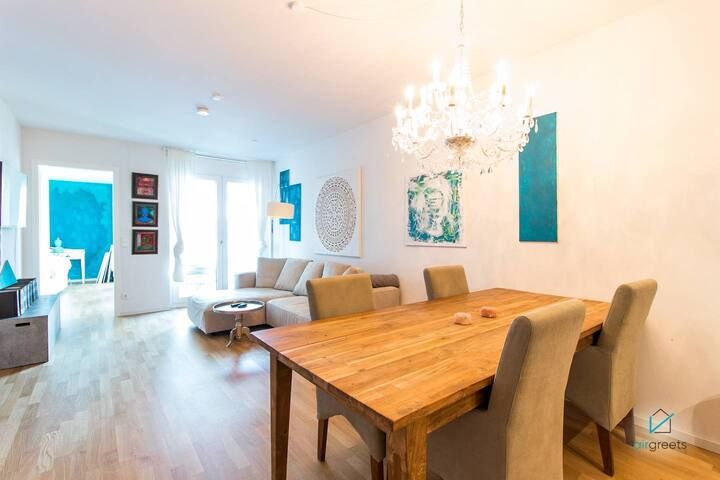 ------ You're searching for the perfect retreat in the heart of Berlin with the certain something? Here it is! My upscale apt. in a new building invites business travelers, couples & small groups or families living in an individually designed flat with design furniture, combined with wonderful art & decor. Enjoy the extras in the house such as a concierge service or a common room with a punching bag. Excellent transport links & many restaurants as well as cafés in the neighborhood promise a grea...