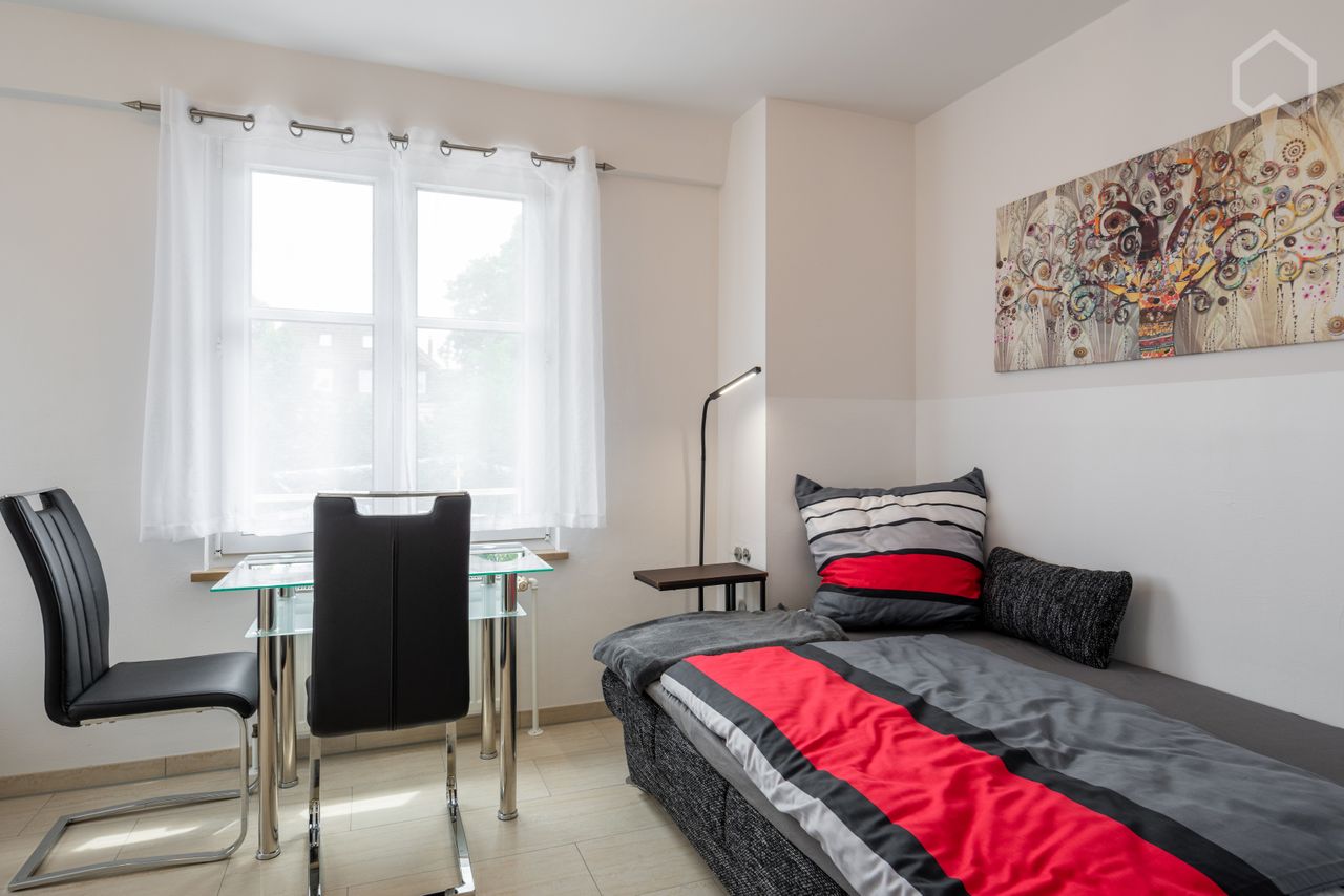 Komplett möblierte Appartement-Wohnung in einem ansprechend gestalteten Architektenhaus. Es handelt sich um einen Wohnungsneubau mit hellen Räumen und gehobener Ausstattung. Hauseingang: Eingangsfoyer mit Briefkastenanlage & Treppenhaus in ansprechender Gestaltung. Im Keller: Wasch- und Trockenraum