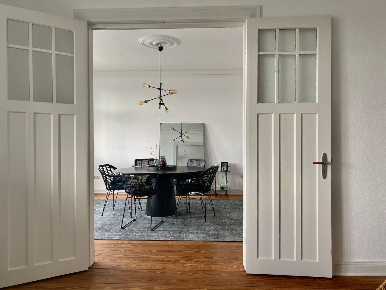 Gorgeous old Building that was renovated but still offers elements of the past and just has this incredible charm to it. High ceilings. Light flooded living room with a little working station. Connected to the dinning room by a spectacular hinged door. 4k SmartTV provides Netflix etc..