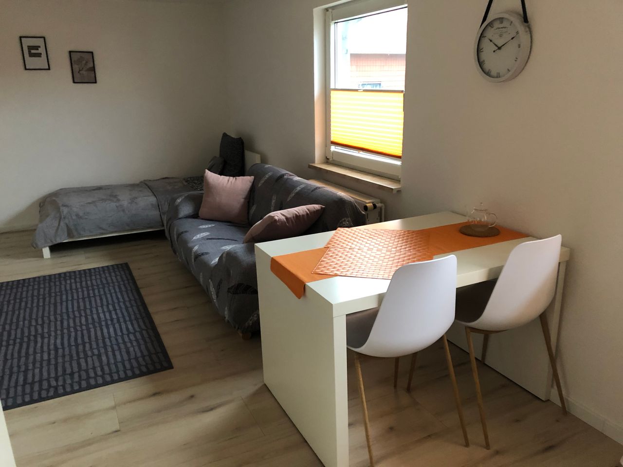 You can move into the attractive, quite apartment on the first floor. Here you have a nice 1-room-apartment. The apartment is fully furnished with all things you need for daily life, including bed linen, towels and dishes. Furthermore a parking space belongs to the apartment. You can simply move in here, relaxed with only your suitcase.