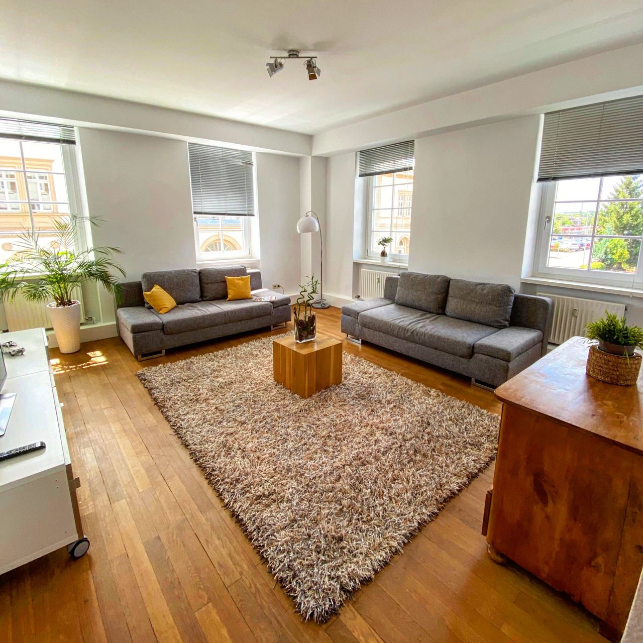 It doesn't get more central than this: Directly next to the main station Sinsheim is this large, newly renovated apartment with a living space of 75sqm in the district town of Sinsheim in the middle of the Kraichgau. Ideal for commuters/train travelers, but also for car drivers, as the apartment has its own parking space. Due to the large, numerous windows, daylight is always available and sunsets can be enjoyed comfortably from the couch. Space to switch off. Here you can feel comfortable: ...