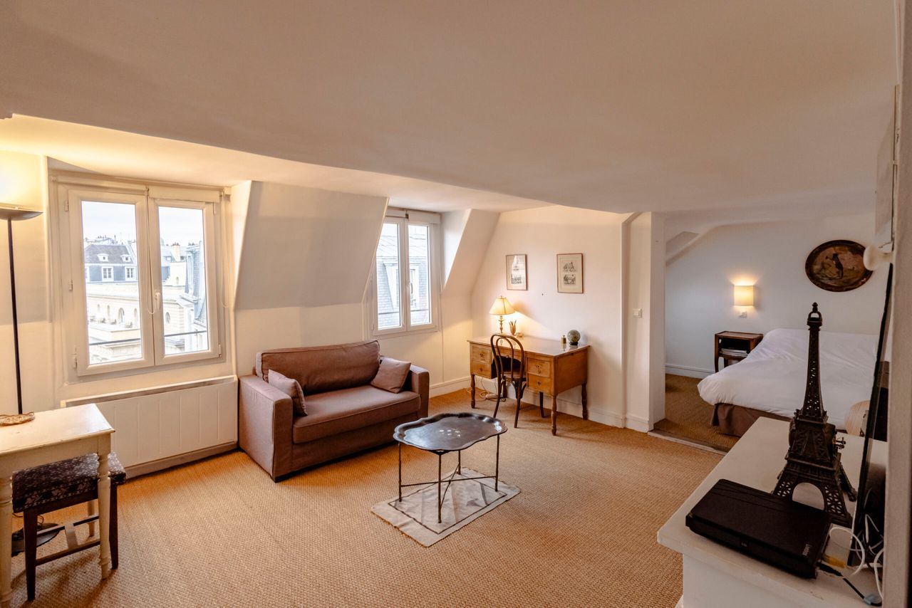 MOBILITY LEASE ONLY: To rent this flat, you must be coming to Paris for work, on a business trip or as a student. This lease is not suitable for tourist stays. Located on the 6th floor (elevator to the 5th) of a building on Rue de Tournon, Host In Paris offers a furnished apartment for rent in the heart of the 6th arrondissement, suitable for 2 guests. It can be rented on a medium-term, mobility basis. Here is its description: – Quiet, bright main room with sofa, decorative fireplace, etc. – Fu...