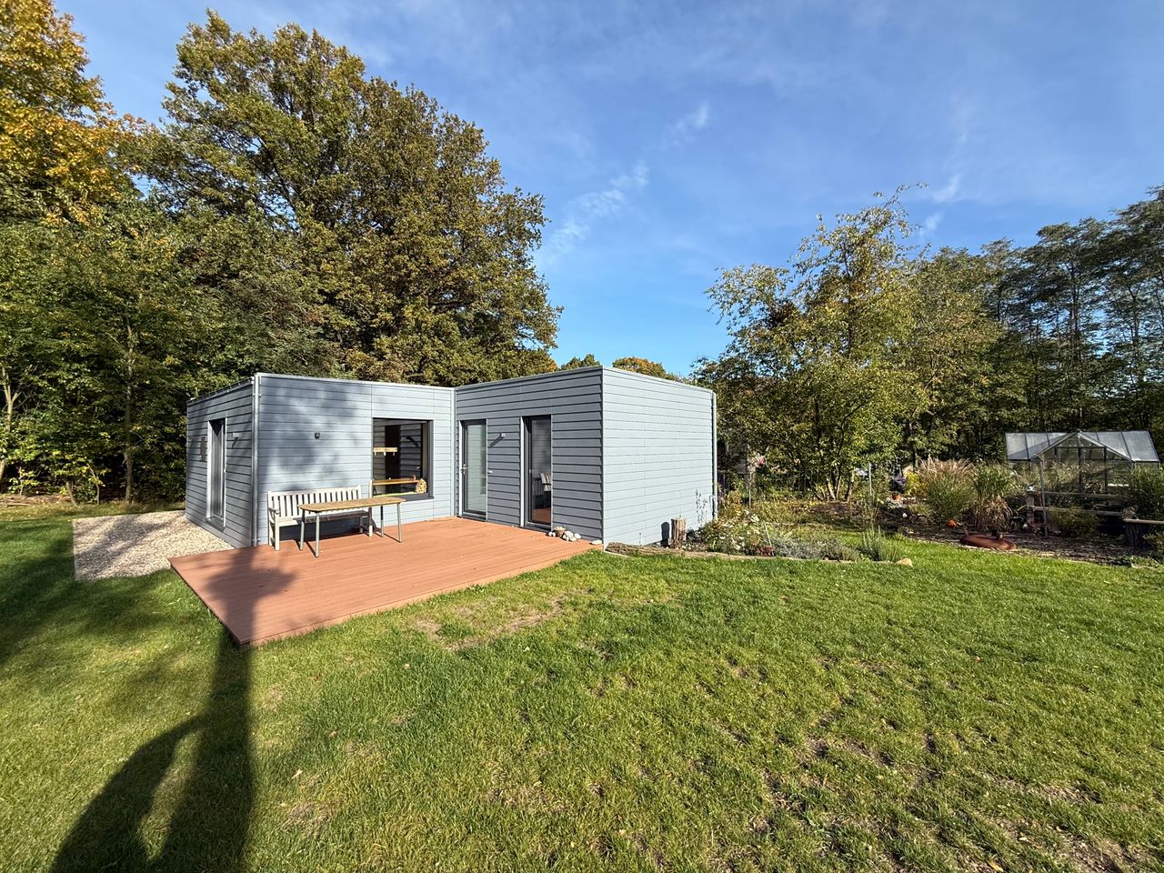 This approximately 63 sqm fully furnished house is idyllically located in the midst of nature and is ideal for temporary rental – whether for a relaxing break, a project stay, a professional assignment, or a transitional period. The spacious open-plan kitchen and living area forms the heart of the house. It features a modern, high-quality kitchen with a very good basic equipment for everyday needs. The adjoining living area offers a very comfortable sofa bed (160 cm wide) and a beautiful view o...