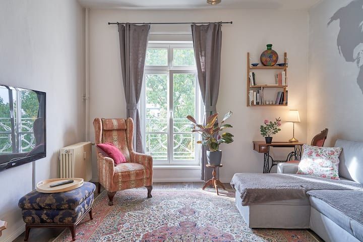 The apartment has been meticulously furnished with great care and love, creating a cozy and welcoming atmosphere. Positioned on the sunny side, it offers breathtaking views of both the sunrise and sunset in Berlin. Moreover, the apartment is designed to be handicapped accessible, ensuring comfort and convenience for all guests. With its high ceilings, long French windows, open closet, newly renovated kitchen, and a relaxing bathtub, it provides the perfect retreat after a long day. Located in t...