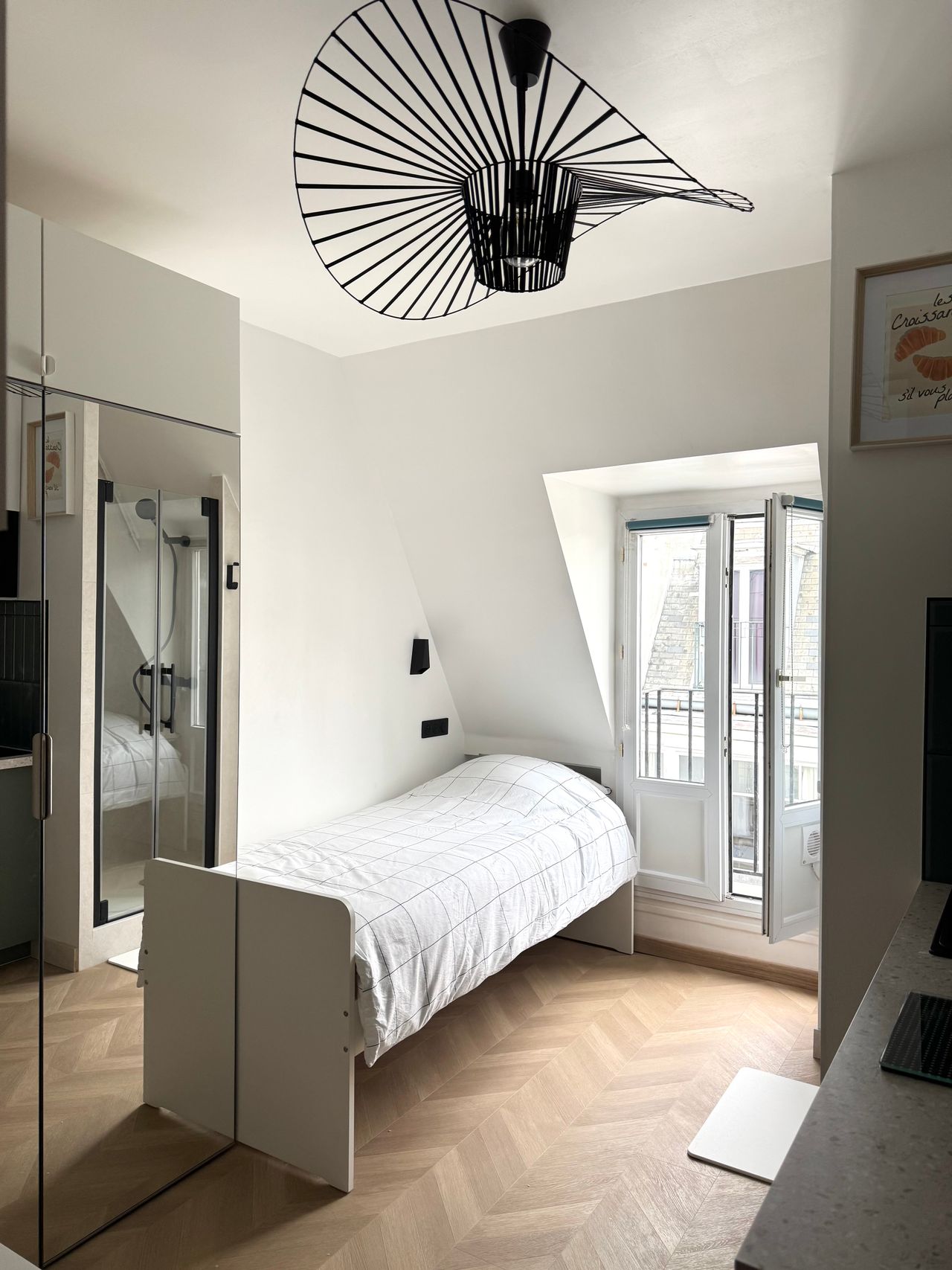 Ideally located in the 9th arrondissement of Paris, right next to Poissonnière metro station (line 7). Perfect for solo travelers or professionals looking to stay in a central, authentic, and well-connected area. 🏡 About the Space Located on the 6th floor of a beautiful Haussmann-style building with an elevator and a live-in caretaker, the studio is compact yet cleverly designed to offer everything you need for a comfortable stay. It includes: 🛏️ A single bed (90×200 cm) 🍳 A fully equipp...