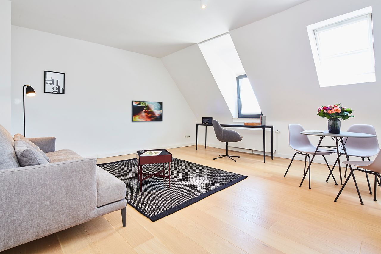 Exclusive residential location in Lindenthal: modern furnishing, parquet flooring, integrated Bulthaup single kitchen with microwave and capsule coffee machine, daylight shower bath, cable TV, W-Lan internet connection with 300 Mbit/s., high-quality hi-fi system, safe, own storage room in the cellar, coin-operated washing machine and dryer in the cellar. Important: Bed linen, towels, blanket and pillow are to be brought independently.