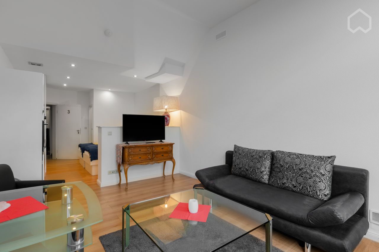 See english version below Die Appartements liegen ebenerdig und zur Gartenseite. Dadurch liegen sie ruhig und mit einem kompletten Ausblick ins Grüne. Unsere Appartements sind ca. 42 qm² groß und verfügen über einen Schlaf- und Wohnbereich. Die Appartements sind löffelfertig eingerichtet, das heißt inklusive Küche/ Küchengeräten (Geschirr, Gläser, Töpfe und Pfannen, Senseo Maschine, Wasserkocher, Mikrowelle etc), Wäsche, Handtücher. Gegebenenfalls Spülmaschine (Das renovierte Appartement (Bild...