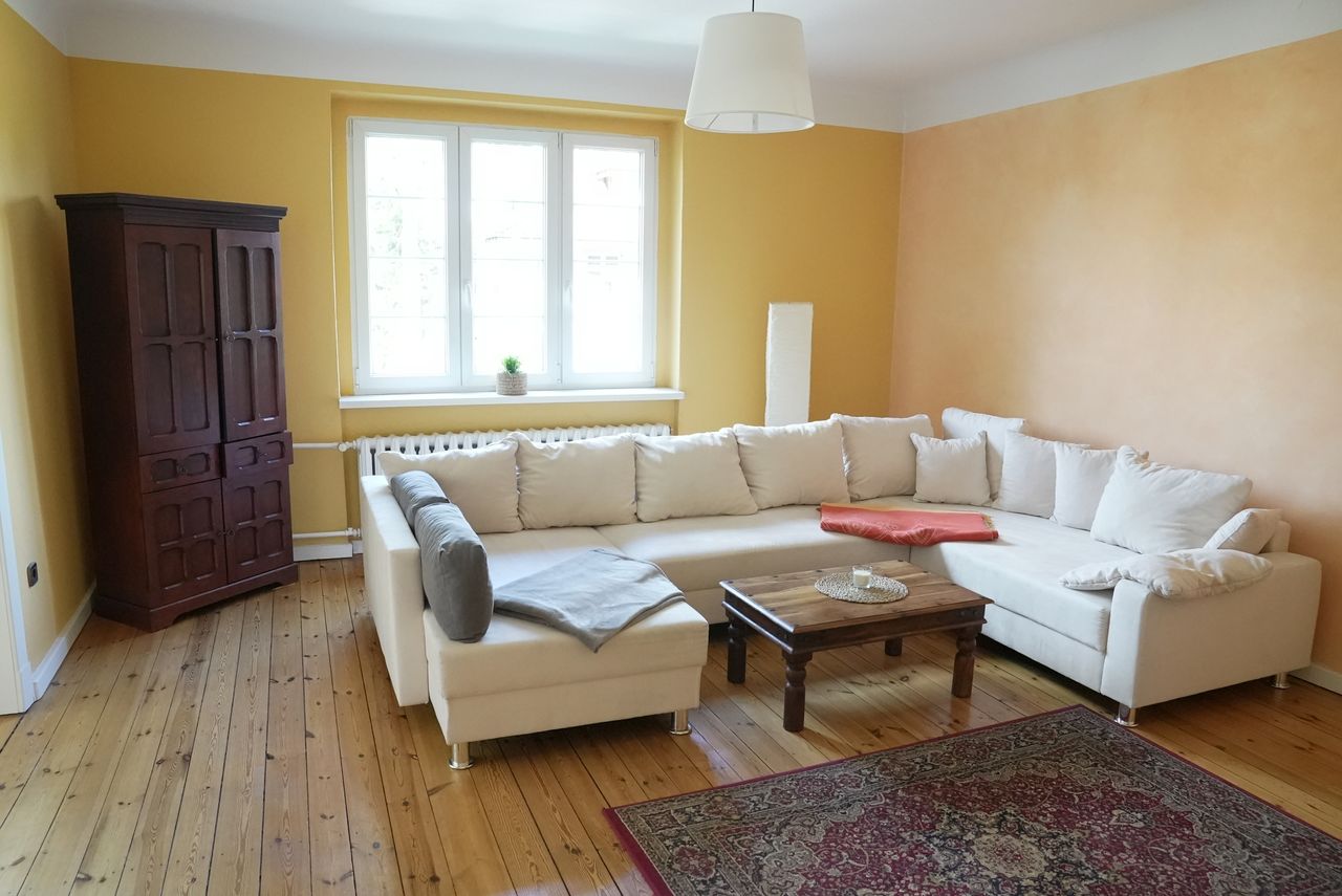 For rent is a beautiful apartment in Berlin-Köpenick. The apartment is located in the wonderful Märchenviertel, in a quiet green area and has a living room, two bedrooms, a study, a porch, as well as a hallway, bathroom and a large kitchen. The rooms are bright and spacious. Parking spaces can be found in the immediate vicinity in front of the house. To the public transport (S-Bahn, bus, streetcar) you walk about 10-15 minutes. To the city center you need about 20-25 minutes by S-Bahn and the ne...