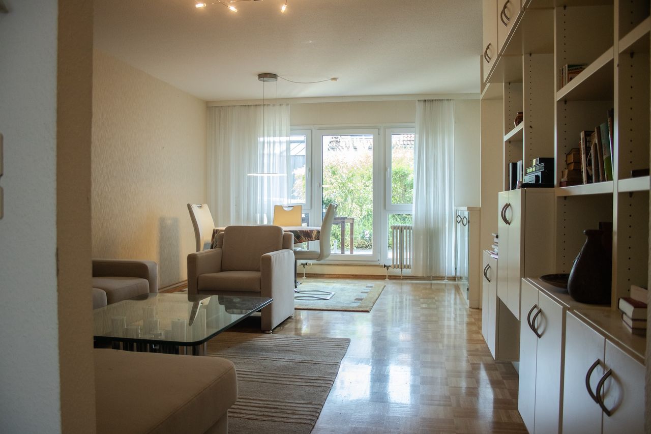 3-room apartment with 88 sqm of living space in the pedestrian zone of Frankenthal, all shopping facilities are within walking distance. The large living and dining room is connected to the semi-open kitchen and opens to a roof terrace. The two rear rooms are furnished with a double and a single bed. There is a small desk in the large bedroom, which also has space for a printer. There is a TV with cable TV in both bedrooms. In addition to a guest WC, the apartment has a bathroom with shower...