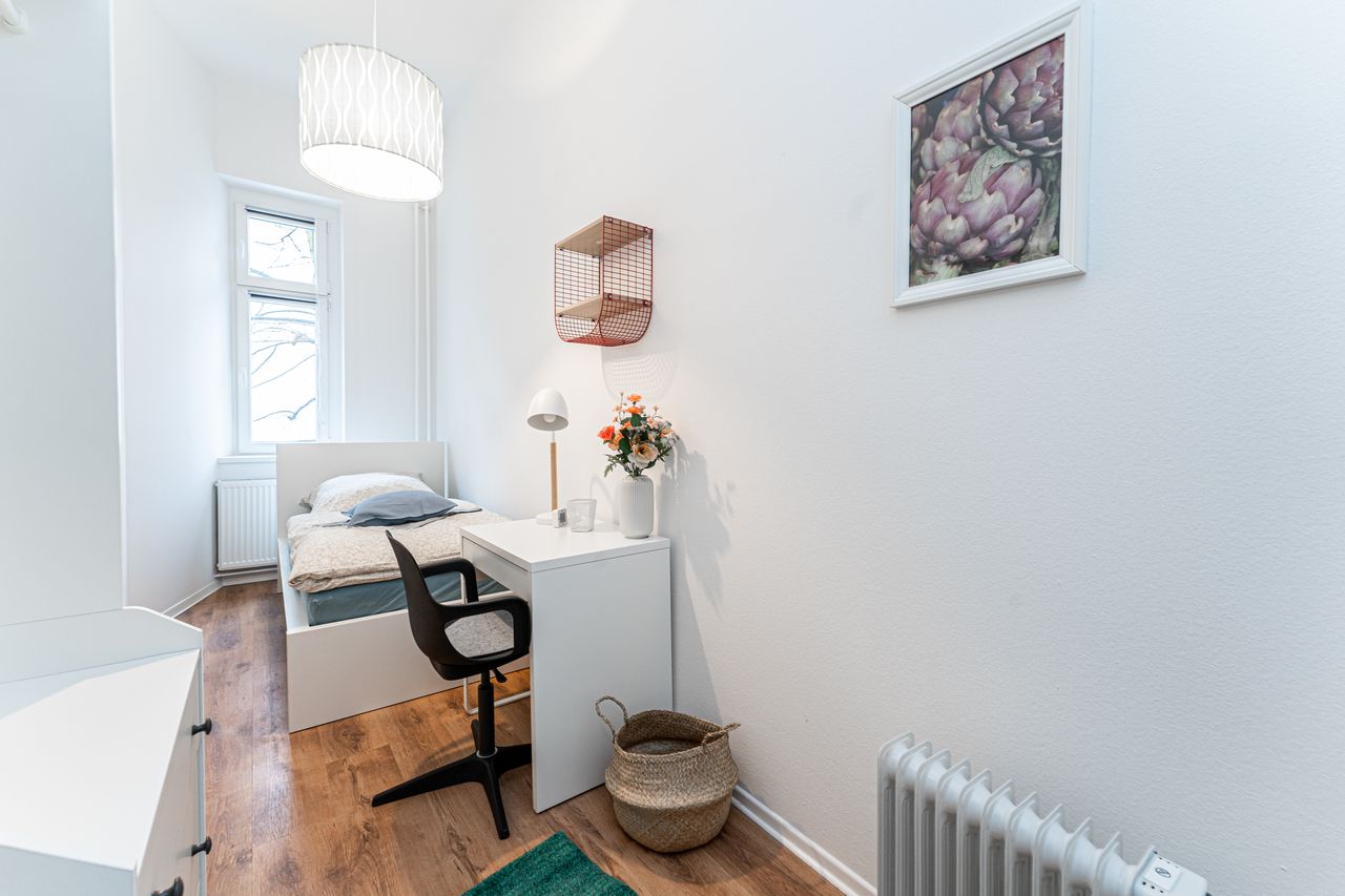 This fully furnished room offers everything you need for a comfortable stay, including a cozy bed, a desk with chair, and a spacious wardrobe. The shared areas feature a fully equipped kitchen, a washing machine, and all essential everyday amenities. 📍 Registration (Anmeldung) is possible 💰 The rent is all-inclusive, covering utilities such as heating, water, internet, and GEZ 📅 Move-in is available on weekdays between 10:00 AM and 3:00 PM. If your contract starts on a weekend, move-in will...