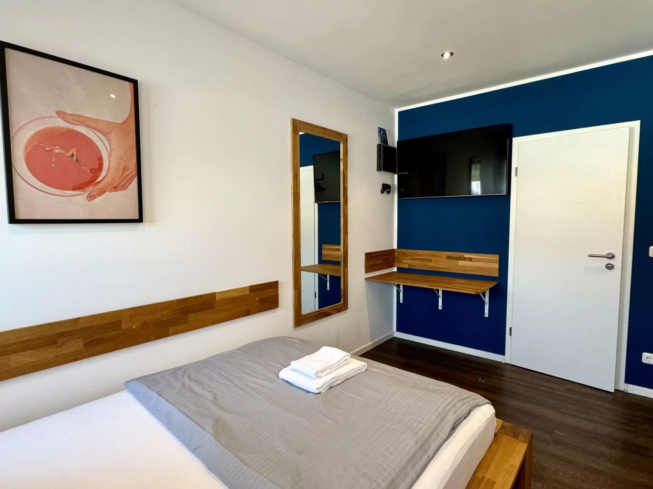 In our hotel we offer you modern, fully equipped flats in different sizes from 30 sqm to 45 sqm. The flats all have high quality equipment including a large flat screen TV and a PlayStation4. You can also use our large communal kitchen as well as the fitness and leisure areas. All hotel services such as breakfast, regular cleaning or towel service can of course be booked in addition.