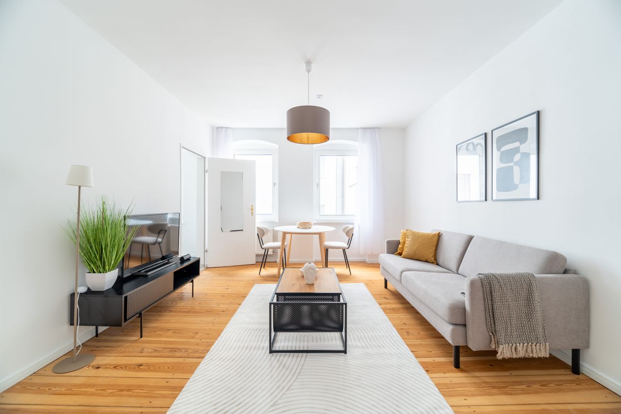 This cozy 1-bedroom apartment in Charlottenburg combines comfort with convenience. The spacious living room offers a relaxing atmosphere, while the well-equipped kitchen ensures that you can enjoy your time at home. Perfect for couples or small families, this apartment offers a peaceful retreat in a central Berlin location.