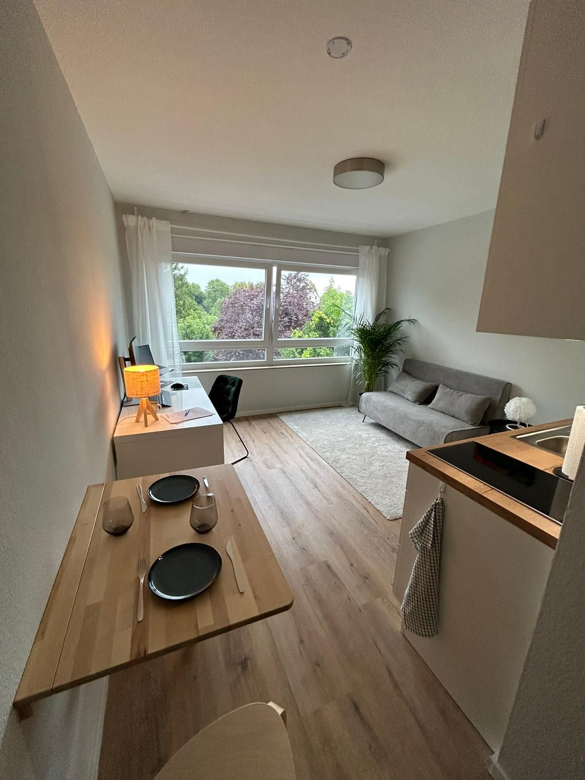 This is a modern 1 room apartment in a central location with good access to public transport. There is a new kitchenette, a new bathroom with walk-in shower and a new sofa bed ready and available. It can be used as a study at the same time. Laundromat only 95 meters away!
