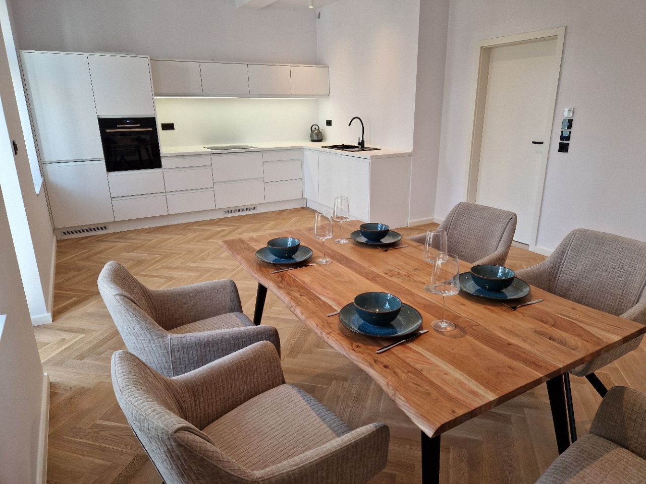 Wohnung möbliert mit Bett, Sofa, Esstisch mit Stühlen und Geschirr (alles unbenutzt/ neu); Möbel können nach Rücksprache übernommen werden.