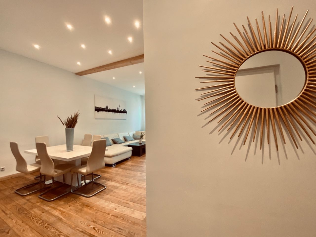 The apartment offered here has been completely renovated and is rented fully furnished and fully equipped. The fitted kitchen includes a refrigerator, hob, kettle and coffee maker. Likewise, the everyday utensils are already included and are rented with. The new bathroom is equipped with a toilet, sink, mirror cabinet and a shower. The second bathroom has bathtub. Towels and bed linen are provided. The apartment is located only two minutes walk from supermarket, bakery, a pharmacy, doctors and...