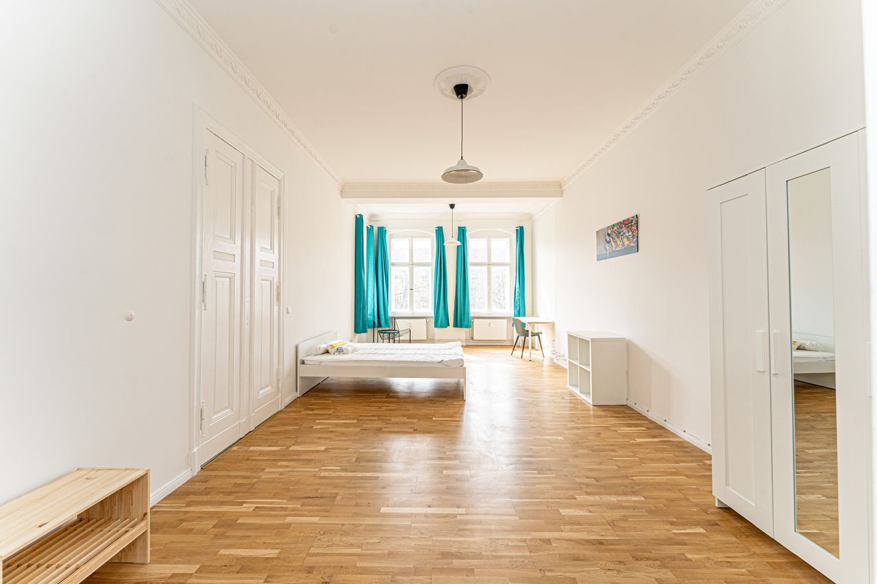 ✨ STAY WITH US – Flat-sharing at its best 🏡 The Apartment 116 m² | 3rd floor | High ceilings | Wooden floors This well-designed and fully furnished shared apartment combines modern living with classic architectural features: Fully equipped kitchen (including stove, oven, refrigerator, microwave, kettle, and toaster) Spacious bathroom Washing machine High-speed Wi-Fi All-inclusive rent (electricity, heating, and water – no additional costs) 🛏 Your Room A private, bright, and comfortably fur...