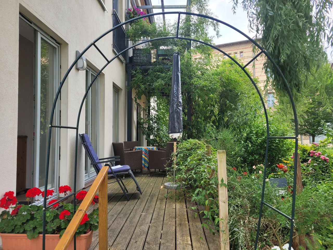 The renovated apartment is on the ground floor of an apartment building on Leipziger Straße and is therefore close to the main train station with transport connections to Berlin and a number of shops and dining options. It consists of a hallway, bedroom with queen-size box spring bed, living room with 50 inch Smart TV cable television, kitchen-dining room, bathroom with tub and shower, a storage room and has a terrace with a view of the Havel - a total of 69 square meters. There is a garden aro...