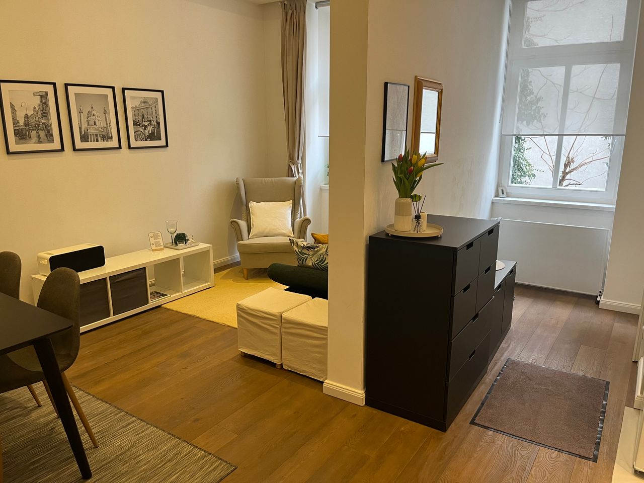 Detailed description: This fantastic small apartment with oak parquet flooring and high ceilings is located on the second floor of turn-of-the-century Viennese building in the increasingly trendy Stuwerviertel. It has a very good layout and has been renovated to a high standard. The interior has been lovingly designed in a light and airy Scandinavian style with Viennese accents. The location with windows in two directions provides pleasant daylight, which is complemented by a well thought-out ...