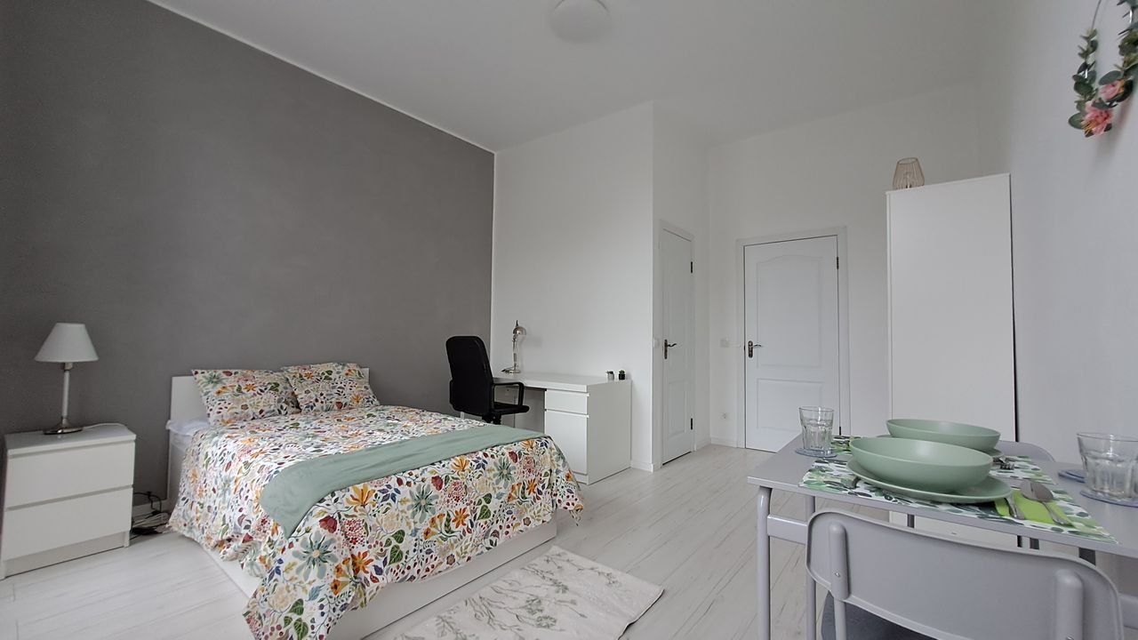 This comfortable studio consists of a bigger room for sleeping, dining, working from home and a smaller entrance room with a well-equipped kitchen. There are also a bathroom with a shower and a toilet. The flat was recently refurnished. It has a working desk and a WiFi connection. It offers ideal conditions for home officing or studying and relaxing. The neighborhood is very quiet, neighbors are very cordial people.