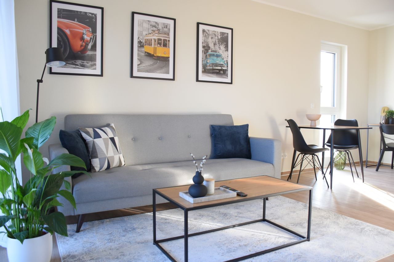 The representative size and the particularly high-quality furnishings make living in the Relaxation apartment a special kind of living experience. In the living room you can relax extensively on the comfortable sofa while the smart TV including waipu.tv is running. Adjacent you will find the cozy dining area and a desk for your daily work. In the fully equipped kitchen you can conjure up small and large delicacies at will. With 1.60 m your double bed, in the open bedroom, is as wide as you are u...