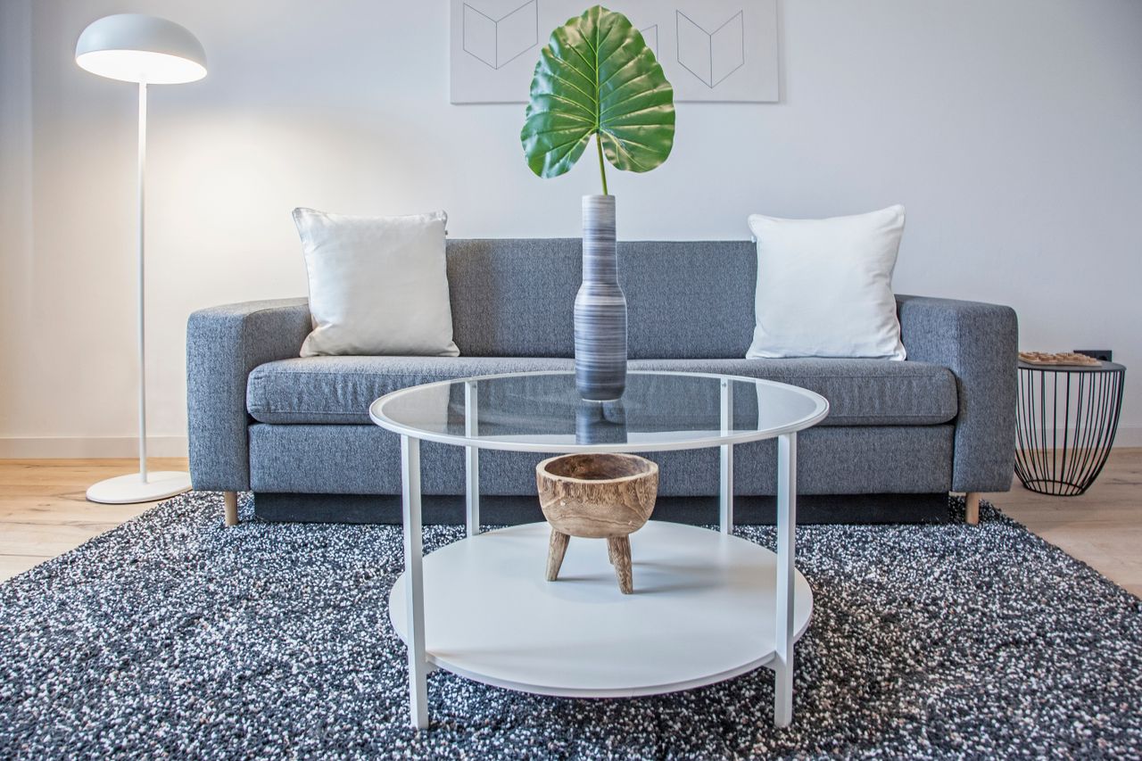 All rooms are fully equipped and offer everything for everyday use. The kitchen has cooking utensils, oven, ceramic hob, kettle, extractor hood, coffee machine and a table-chair combination. The balanced mixture of classic elements and modern design describes the bathroom. The hallway leads to the bedroom, which is equipped with a large built-in closet, a bed (140cm x 200cm) and a side table. The living area is furnished with a comfortable couch with a coffee table, a shelf and a smart TV. Mod...