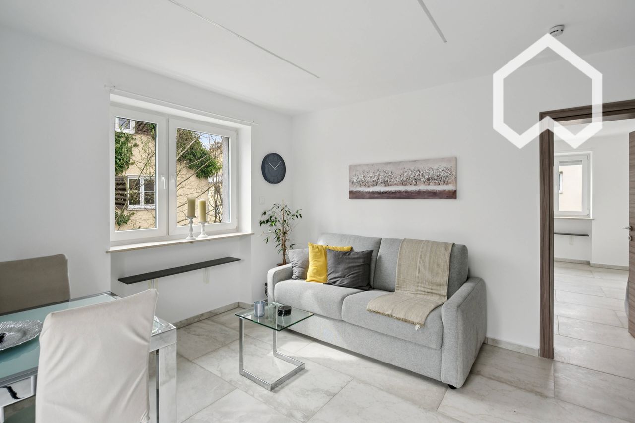 Gesamte Wohnung Galeriewohnung Helles 2 Zimmer. Mit eine große Terrasse 30 Quadratmeter. In zentraler Lage auf der Simbacherstraße. Wenige Gehminuten zu U-Bahn, S-Bahn, Tram und Bus am Ostbahnhof Voll ausgestattete Küche und modernes Mobiliar Viele Einkaufsmöglichkeiten, Cafés, Restaurants und kulturelle Angebote direkt vor der Tür