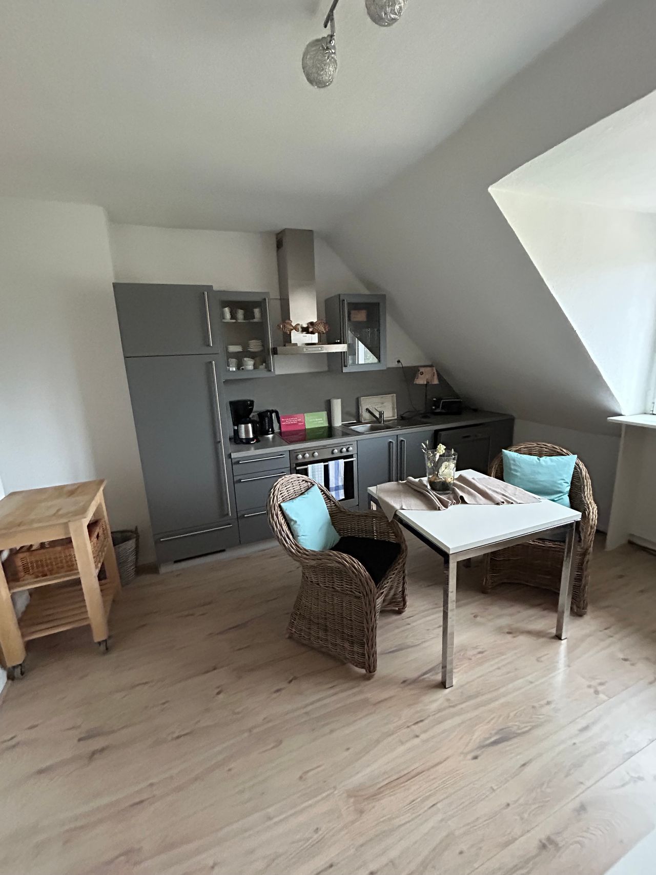 The apartment is located on the top floor of a well-kept apartment building in the center of Essen. The furnishings are high-quality and modern, have a visually separated, well-equipped kitchenette, WiFi, a living room to feel good and relax, and a chic bedroom with a double bed. A small bathroom with shower completes the offer. Bed linen and towels are provided. Monthly cleaning of the apartment including linen change as well as stairwell cleaning and window cleaning are also included. Terrace ...