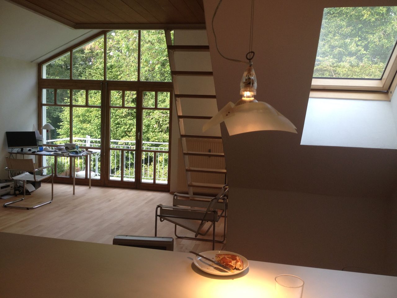 Exceptionally beautiful 1.5 room studio apartment, 43 sqm, coffee, bakery, supermarket etc. around the corner, 5 minutes walk to the S-Bahn, 15 minutes to Marienplatz, direct connection to the airport, several bus lines and subway nearby, free parking in front of the house or nearby, absolutely quiet, south-west balcony with view into the park-like garden, double bed 160 x 200 on the gallery, fully equipped kitchen. Washing machine in the cellar. The apartment is located on the 2nd and top floo...