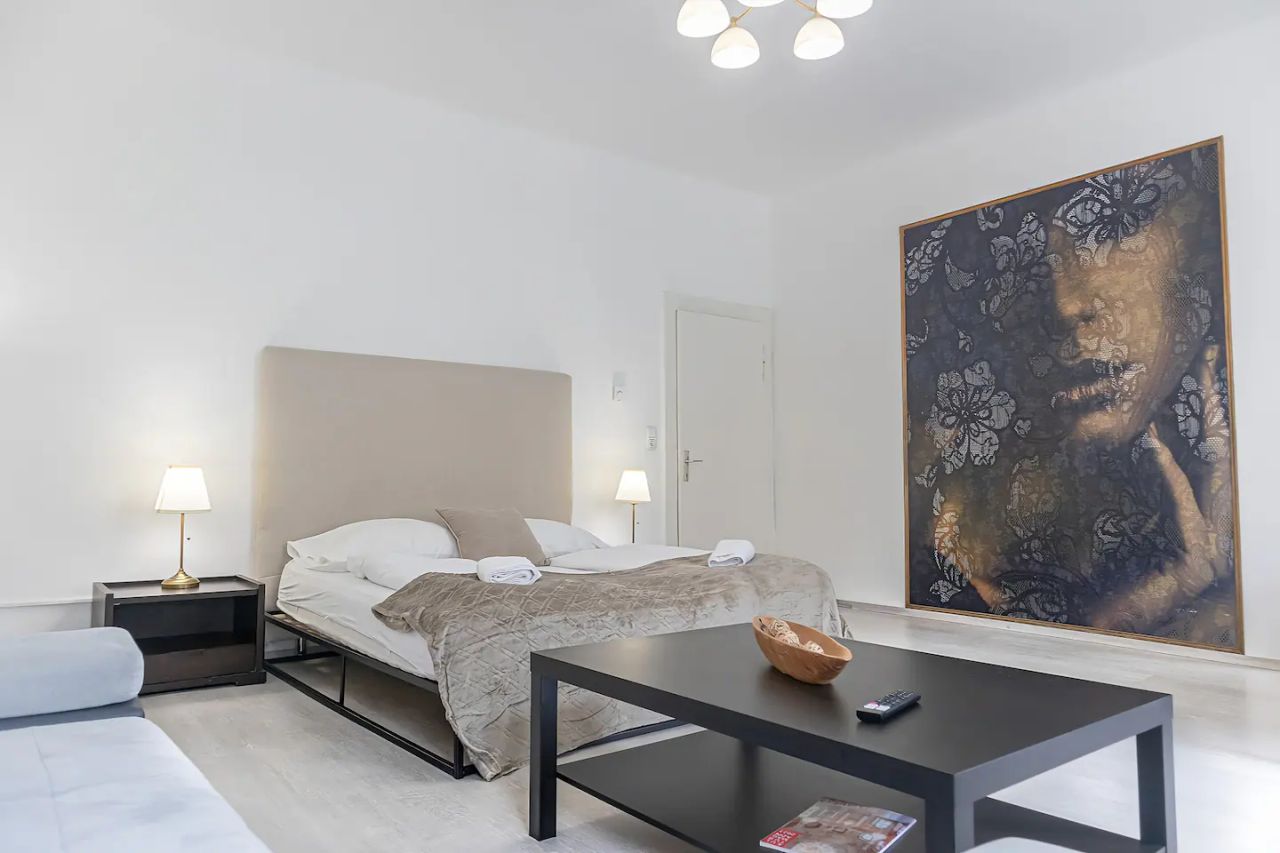 A beautiful and modern room apartment in the heart of Vienna, 10 minutes from Belvedere Castle. We offer EXCLUSIVELY: ✔ Shuttle service for up to people 8 for €60 ✔ Self check-in ✔ Coffee maker ✔ high-speed internet ✔ Smart TVs included Netflix ✔ Fully Equipped Kitchenette ✔ comfortable beds and pillows ✔ Bath & shower ✔ high quality toiletries ✔ cheap parking for €7 day/ €✔ 2 per booking for donations The space The 35m2 flat is on the 3rd floor and has the following layout: From the anteroom...