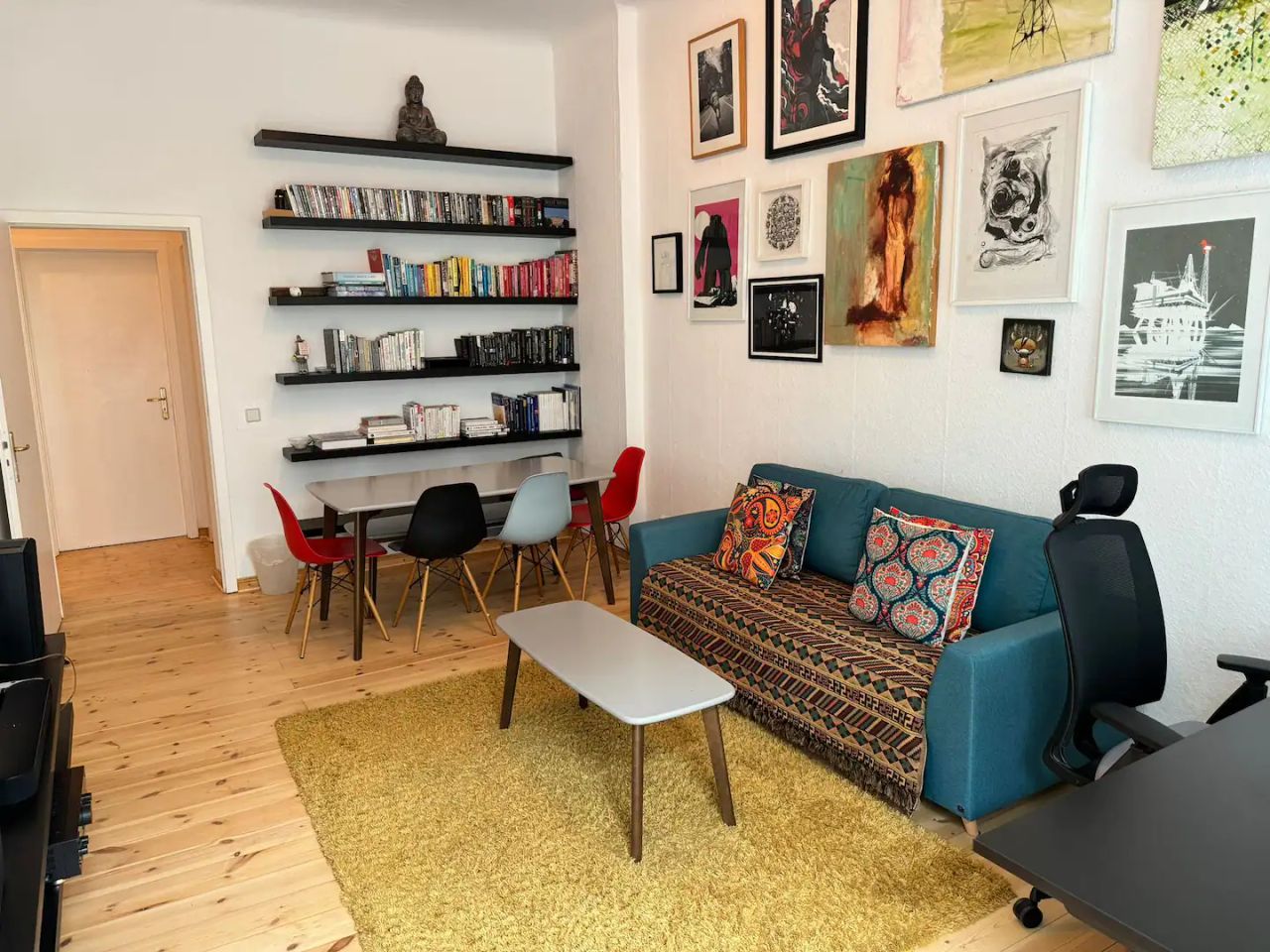 The apartment is located on a quiet street in vibrant Friedrichshain. It is a short walking distance away from U-bahn and S-bahn station Frankfurter Allee. Within walking distance are many cafes and restaurants, as well as supermarkets such as Edeka, Lidl, and Netto. The living room faces south and gets beautiful light. There are windows on both sides of the apartment for a cross-breeze.