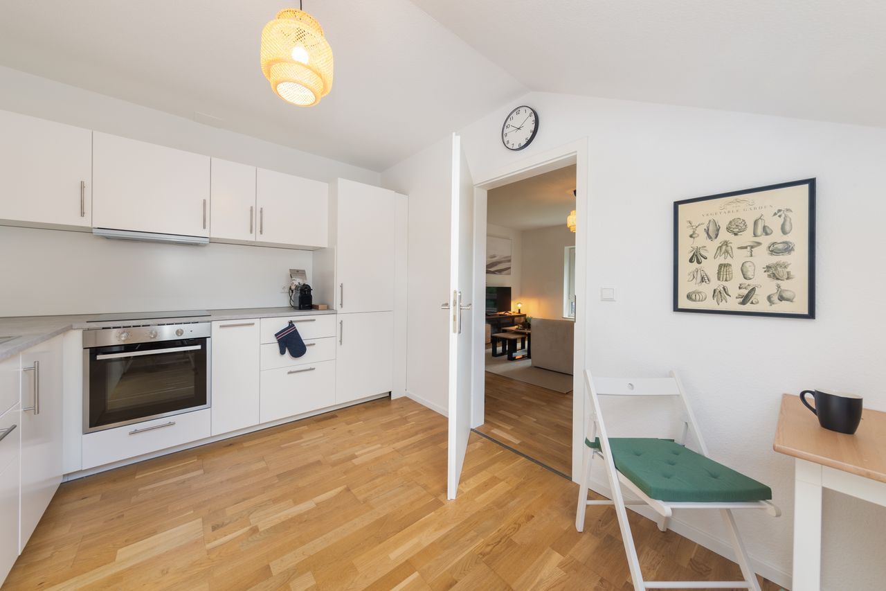 This high-quality 2-bedroom apartment, measuring approximately 74 sqm, is located in a well-maintained semi-detached house built in 2000 and was extensively renovated in 2023. The apartment boasts bright, spacious rooms with high ceilings and elegant wooden flooring, creating a special, inviting atmosphere. The private balcony offers a perfect place to relax and enjoy the peaceful surroundings. The modern, fully equipped kitchen with brand-name appliances, as well as the stylish bathroom with bo...