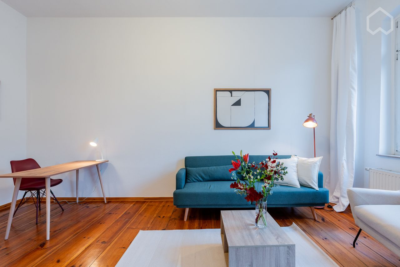 Welcome to your new urban retreat! This exclusive 2-room flat extends over a generous 60 square metres and offers a living experience in a class of its own. Following a fresh renovation, this property in the sought-after Friedrichshain district is a first-class first-time occupancy. High-quality materials and well thought-out furnishings create an atmosphere of luxury and sophistication. Upon entering the flat, you will be amazed by the generous room layout. In the living rooms, you benefit fro...