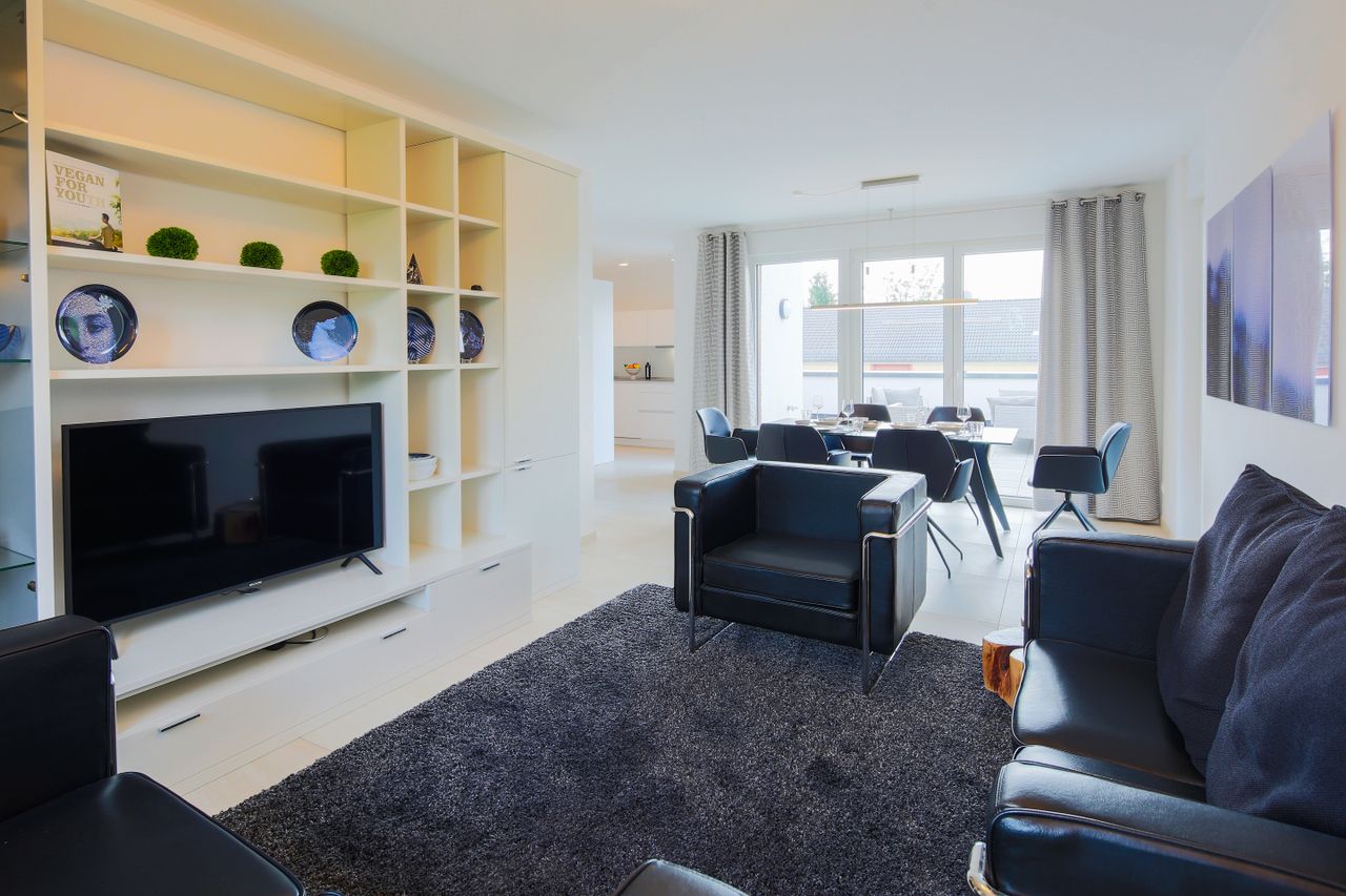 Haus mit 14 Wohnungen, ca. 7 km zur Innenstadt Frankfurt, 8 km zum Flughafen, 10 Minuten Fußweg zum Mainufer Fußbodenheizung hochwertige Design-Möbel, Einbauküche in Hochglanz Weiß, Tageslichtbad mit Dusche und Badewanne, zusätzliches Gäste-WC Abstellraum mit Waschmaschine und Trockner in der Wohnung große Dachterasse, mit Loungemöbeln und Markise House with 14 apartments, approx. 7km to Frankfurt city centre, 8km to the airport, 10 minutes walk to the banks of the Main river. Underfloor heatin...