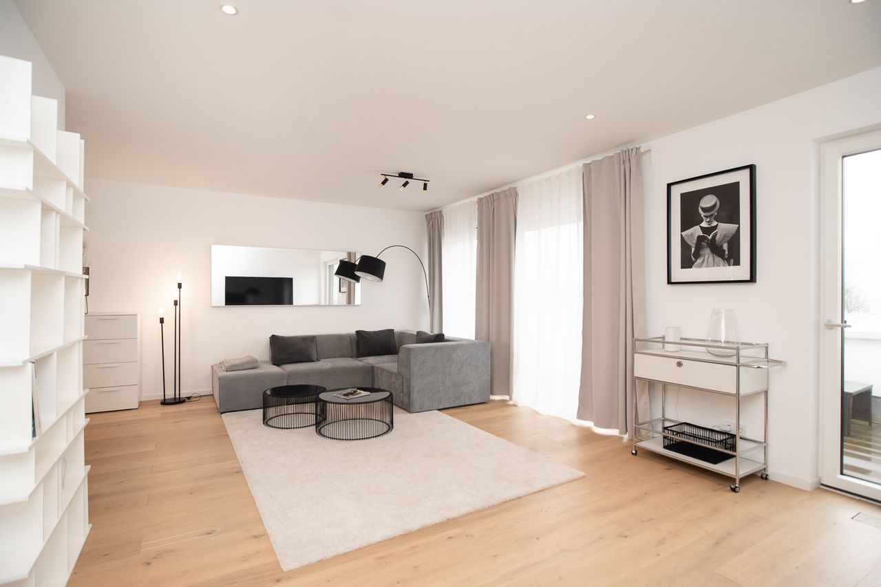 Modern and High-Quality Furnished 5-Room Apartment with Balcony This stylish apartment offers three separate sleeping arrangements: One bedroom with en suite bathroom and walk-in closet A second bedroom with en suite bathroom A third bedroom Plus, a guest bathroom The modern black open-plan kitchen is fully equipped and perfect for passionate home cooks. A dining area for four is also included. The living room features a large L-shaped sofa and provides direct access to the balcony. Inter...