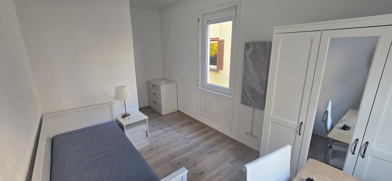 This bright, modernly furnished room is located in a well-maintained three-room shared apartment at Duisburgerstraße 22 in Stuttgart-Bad Cannstatt. The room is approximately 13 square meters and fully furnished with a bed, desk, chair, wardrobe, and shelving unit. Thanks to the large window, the room is bright and airy. The apartment features a fully equipped kitchen with a refrigerator, stove, oven, and all essential kitchen utensils. The bathroom is modernly tiled and shared. A washer-dryer is...