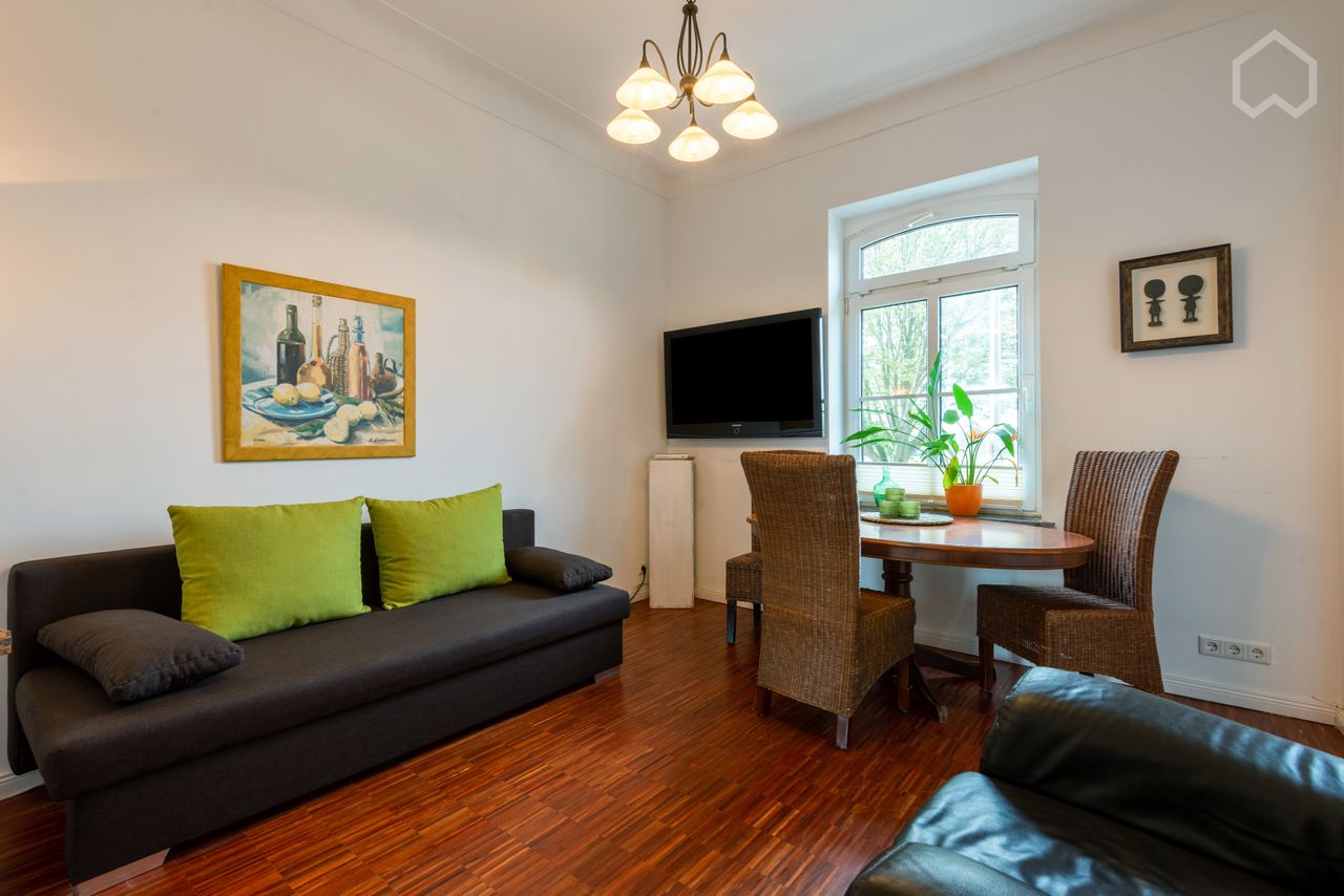 Our house is located in the velvet and silk city of Krefeld, with very good transport connections. So you can reach e.g. the fair Düsseldorf or the airport in about 15-20 minutes. Our newly renovated apartment is about 60 m² and has 2 rooms, a complete kitchen, as well as a comfortable bathroom with shower. Furthermore you have your own large roof terrace for exclusive use No fighting dogs allowed. Other pets are allowed after consultation. An additional fee of €150 per month is charged for p...