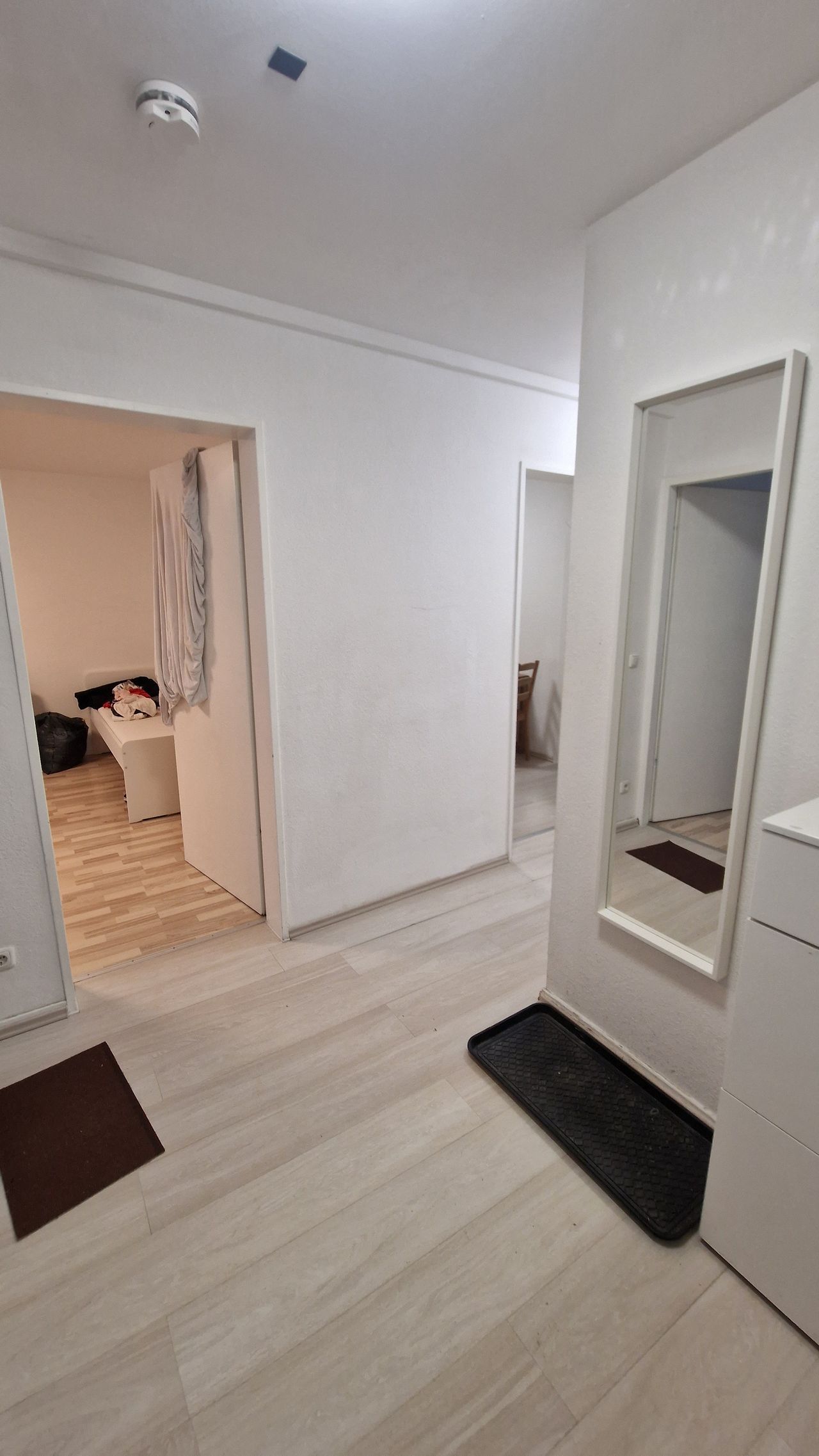 In this apartment there are two large rooms (one of which can be converted into a living room) and two smaller rooms that can be accessed via the hallway. Between the two large rooms is the kitchen, which is equipped with a table and at least four seats.