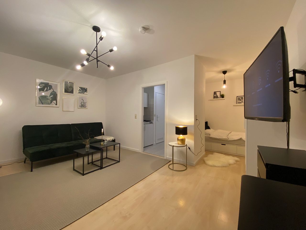 Stylish, freshly renovated and well-equipped apartment in Karlsruhe (Grünwinkel). An underground parking space is included. Ideal for a working person / commuter who wants to experience a feeling of wellbeing with flair and not the classic hotel feeling. A 50-inch television with integrated Amazon and Netflix configuration are received. In addition to the 1.40 m wide bed, sealed off from the living area, the apartment has a modern sofa bed. The kitchen is equipped with everything you need as s...
