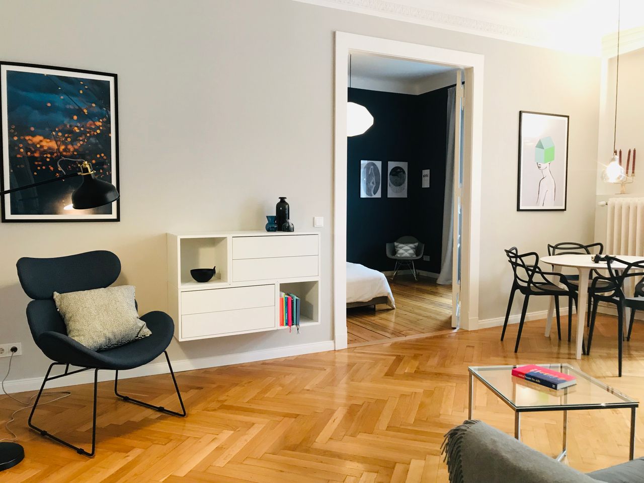 ***GENERAL*** Beautiful, wonderful bright apartment with two rooms, walk-in-closet, big bathroom and balcony in a quiet side-stree of Ku'Damm for lovers of fine living! An extraordinary home! ***FEATURES*** The apartment has been fully refurbished a few years ago with very high attention to detail and design. The apartment has smoothed walls, historic herringbone parquet and floorboards, stucco, historic coffered doors that were made up with glass inlays, beautiful kitchen (white satin-finished...