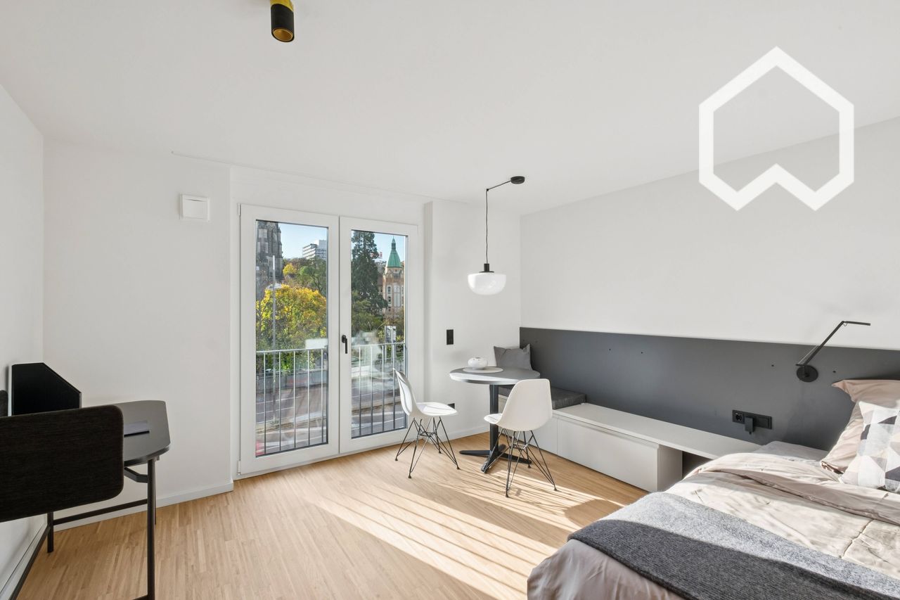 This approx. 25 m², fully furnished 1-room flat in the stylishly renovated old building of the Gerber Living project combines classic old building charm with modern comfort. Large windows on several sides ensure an exceptionally bright living atmosphere and allow plenty of daylight into the compact, cleverly designed space. The flat is ideal for professionals, project staff or students who value design, functionality and a special location.