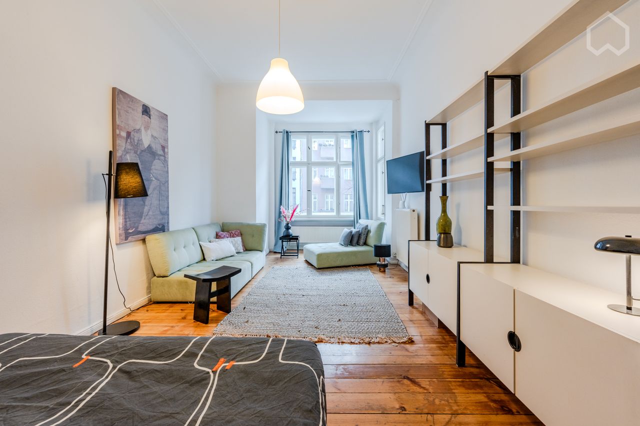 Modernly furnished old building apartment in the Charlottenburg Spreebogen. Located on the 1st floor, this 1 room apartment offers a bright urban atmosphere with its large windows. Good transport connections to the city motorway and local public transport, restaurants, cafes, bars and shopping opportunities are within walking distance of the door or around the corner.