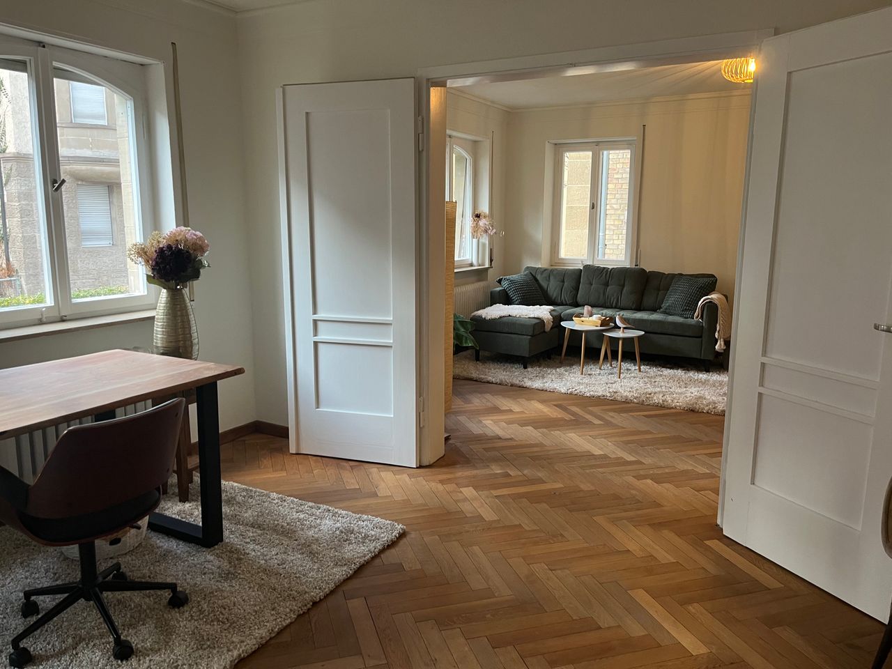 The dream apartment with old-world charm includes a modern fitted kitchen equipped with BOSCH brand appliances, boxspring bed and much more. Bakeries, pharmacies, doctors, schools and shopping facilities are within short walking distance.