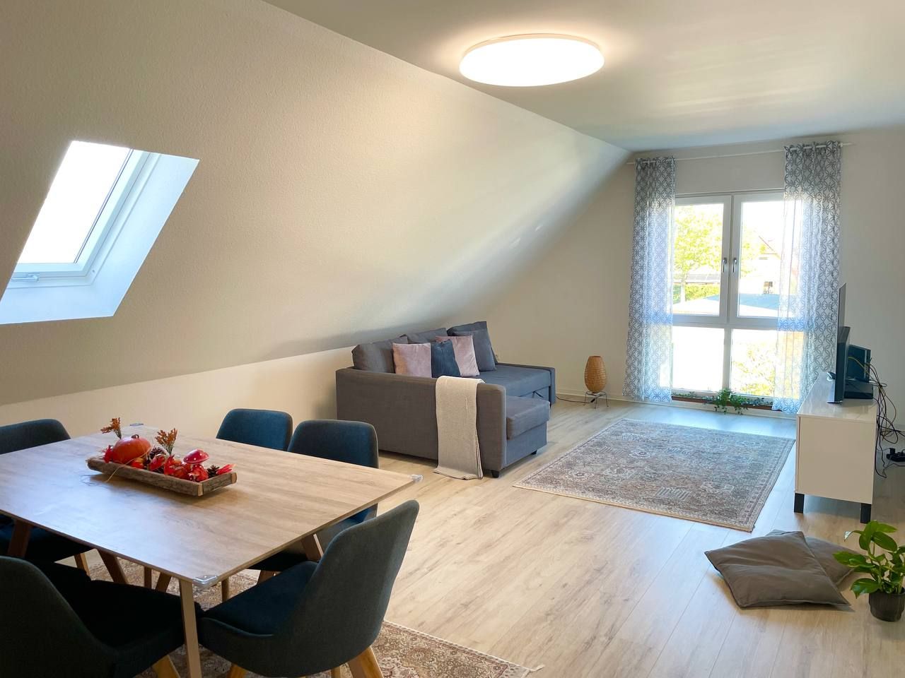 The apartment is located on the top floor of a two-family house. It features two bedrooms, a living room, a kitchen, a bathroom, and an attic. It comes fully furnished and includes a small garden and parking space (you may covert the parking space to the garden)