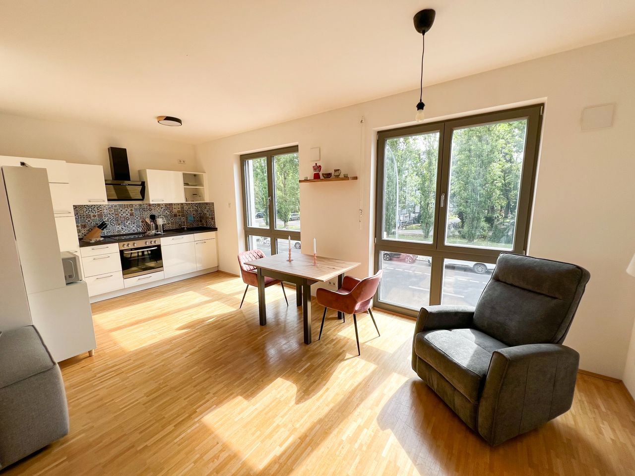 - Location: Unbeatable central location in Mitte, Heinrich-Heine street. Right at the edge of the lively Kreuzberg district. Just a 2-minute walk to U8 U-Bahn, also 2 mins walk to Bus M29, and supermarkets. - Availability: The apartment is available immediately for 1 year. - Size: 67 sqm, perfectly designed for modern living. - Views: Floor-to-ceiling windows with stunning views of the TV Tower and green inner courtyard and a picturesque street lined with trees from your living room. - Outdo...