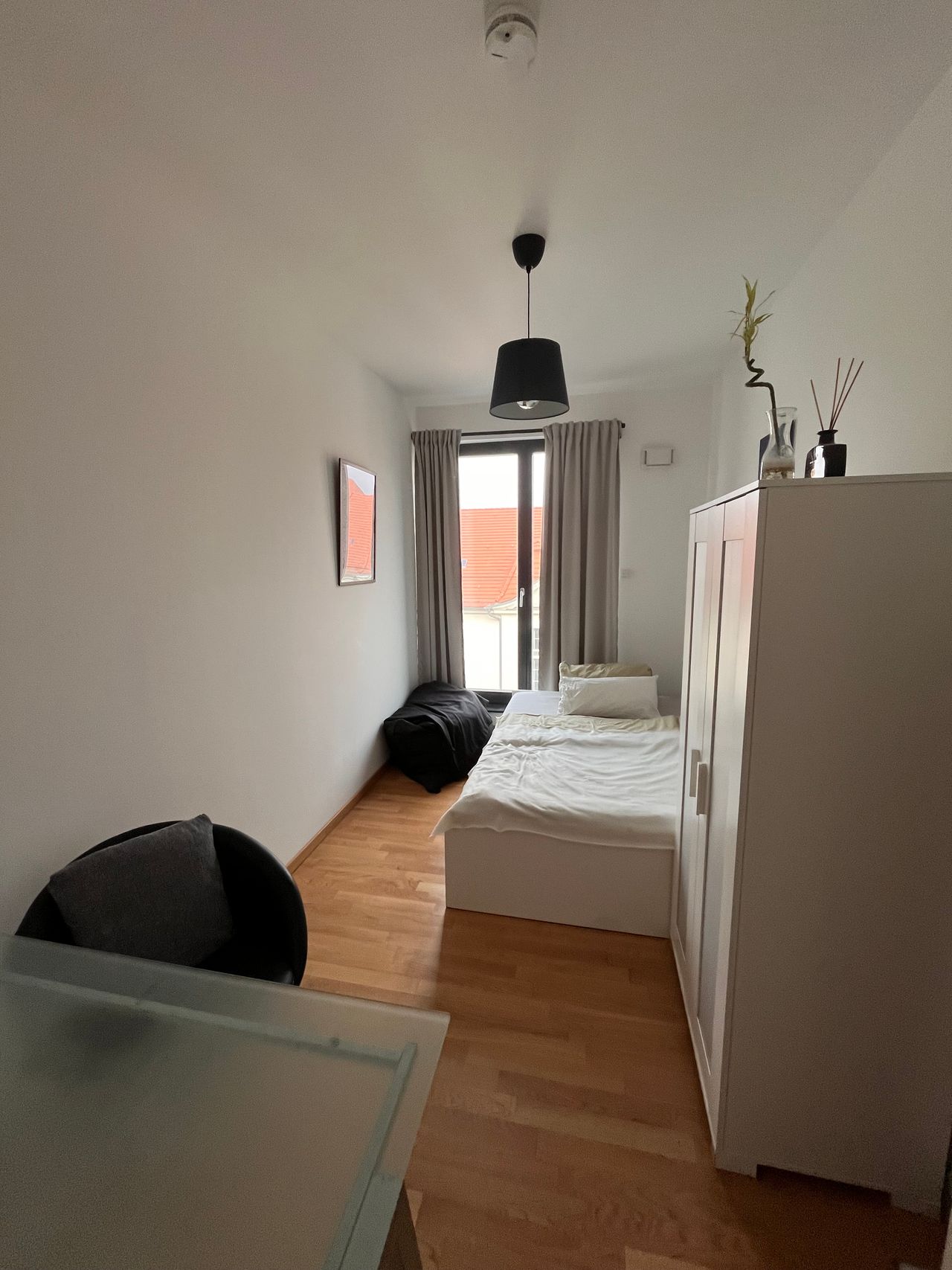 Furnished Guest Room with Private Bathroom Right Next to Schlosspark Pankow I'm renting out my cozy, fully furnished guest room in a quiet location – right next to the beautiful Schlosspark Pankow. Ideal for professionals, interns, or students looking for a well-maintained temporary accommodation. The room offers you: a comfortable 160 cm wide bed a spacious wardrobe a desk with chair fast Wi-Fi Private bathroom: A modern, private bathroom with a walk-in rain shower is available for your ...