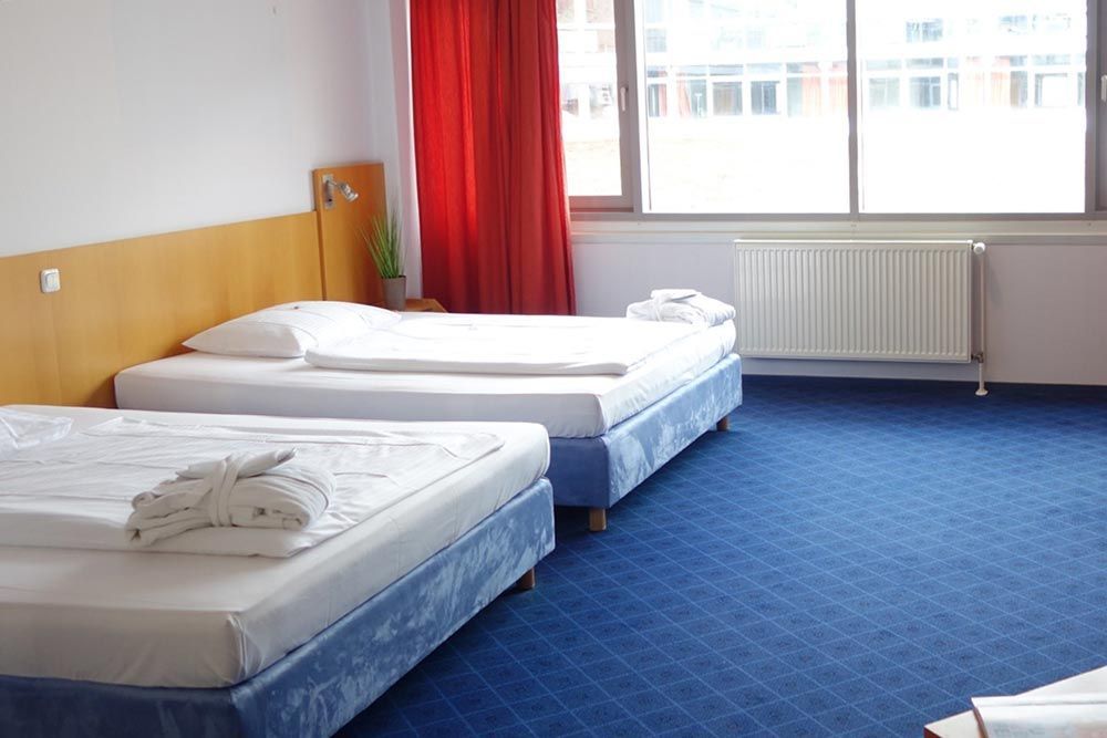 Light-flooded, quiet, spacious and generous are characteristics that best describe our rooms. The rooms are equipped with two large double beds, desk, seating, flat screen TV, noise-proof windows, free Wi-Fi and bathroom with shower, toilet, hairdryer & cosmetic mirror. Also included are kettle (free to borrow), free use of the microwave at the buffet in the breakfast room, mail acceptance and a safe storage for your bike. Nearby is a self-service laundromat at the Neustadt is available. If the...