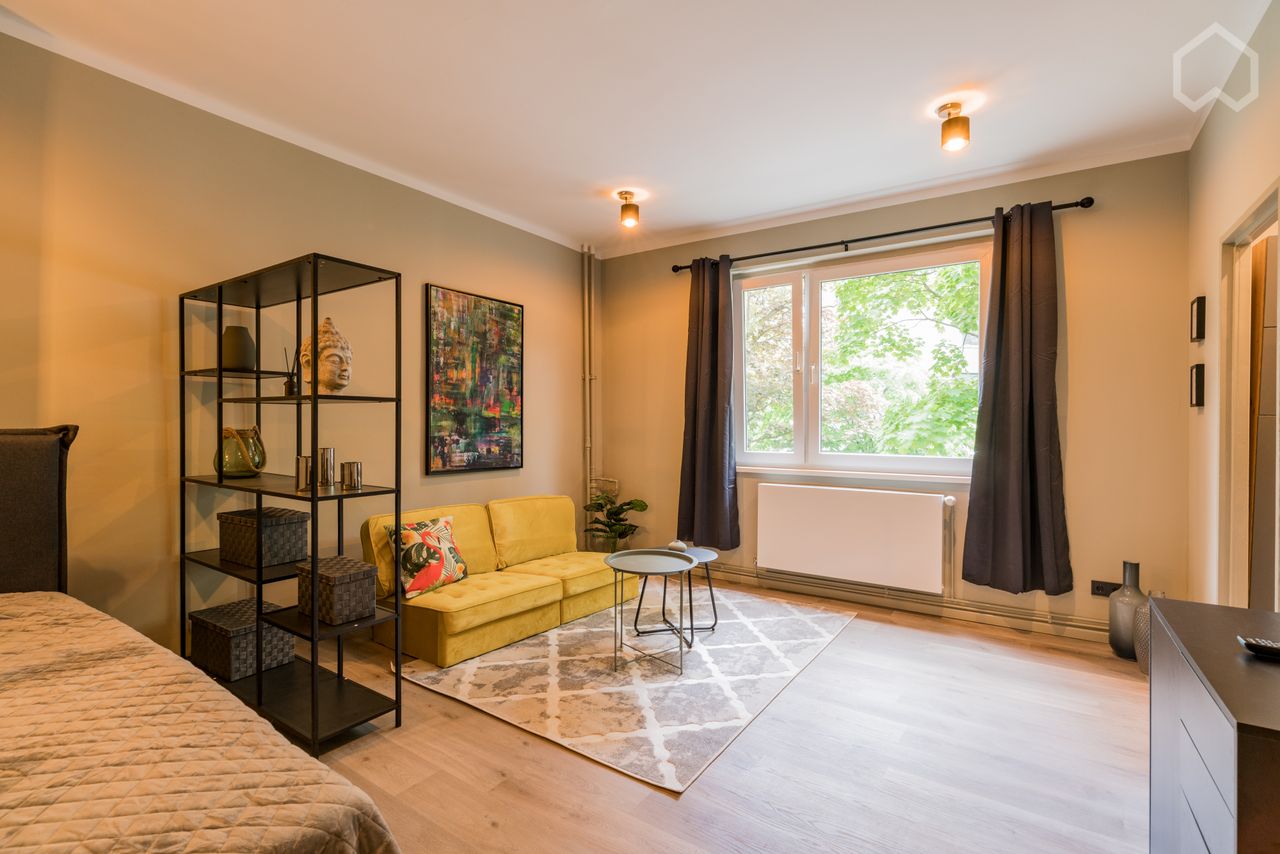 Beautiful, completely renovated 1-room apartment in Berlin - Friedenau. Living/sleeping room with couch and high quality boxspring bed (1,20m wide) New fitted kitchen with exquisite black tiles, large fridge-freezer, stove with ceramic hob, table as a workspace Fantastic black tiled bathroom with large walk-in rain shower The apartment is quietly located in the west of Berlin, Friedenau district in a good middle-class area Super connection to public transport: S+U Bundesplatz 550m 7 min walk We...