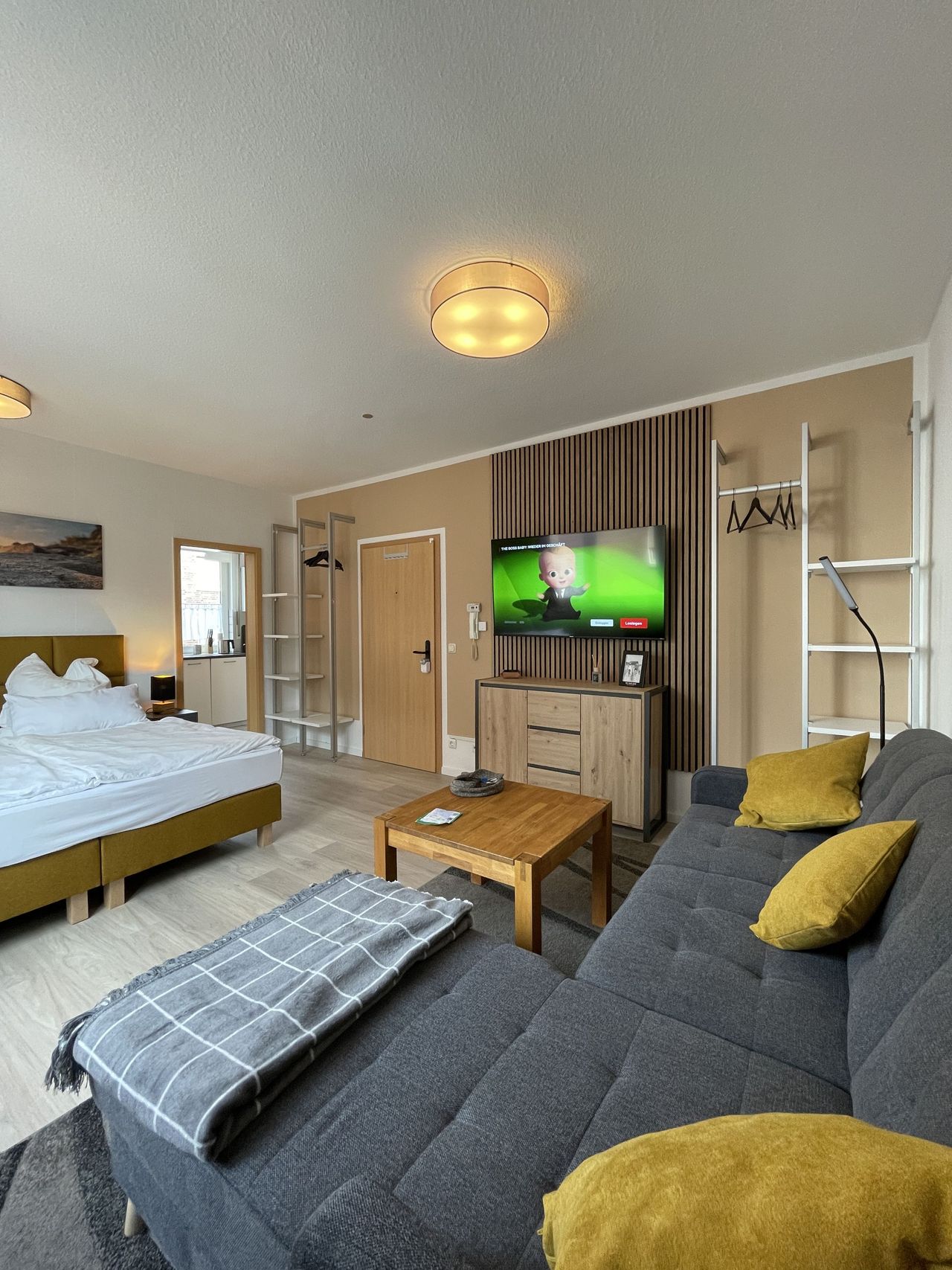 Discover your new home at Bozener Straße 55 in Mönchengladbach-Eicken! This modern 37 m² one-bedroom flat not only offers a flexible sofa bed and a separable double bed for optimum comfort, but also a fully equipped kitchen that leaves nothing to be desired. With extras such as WiFi, Netflix, washing machine, tumble dryer and iron, everything you need to move straight in. The perfect choice for those who value a central location, with excellent connections to the city centre and extensive local ...