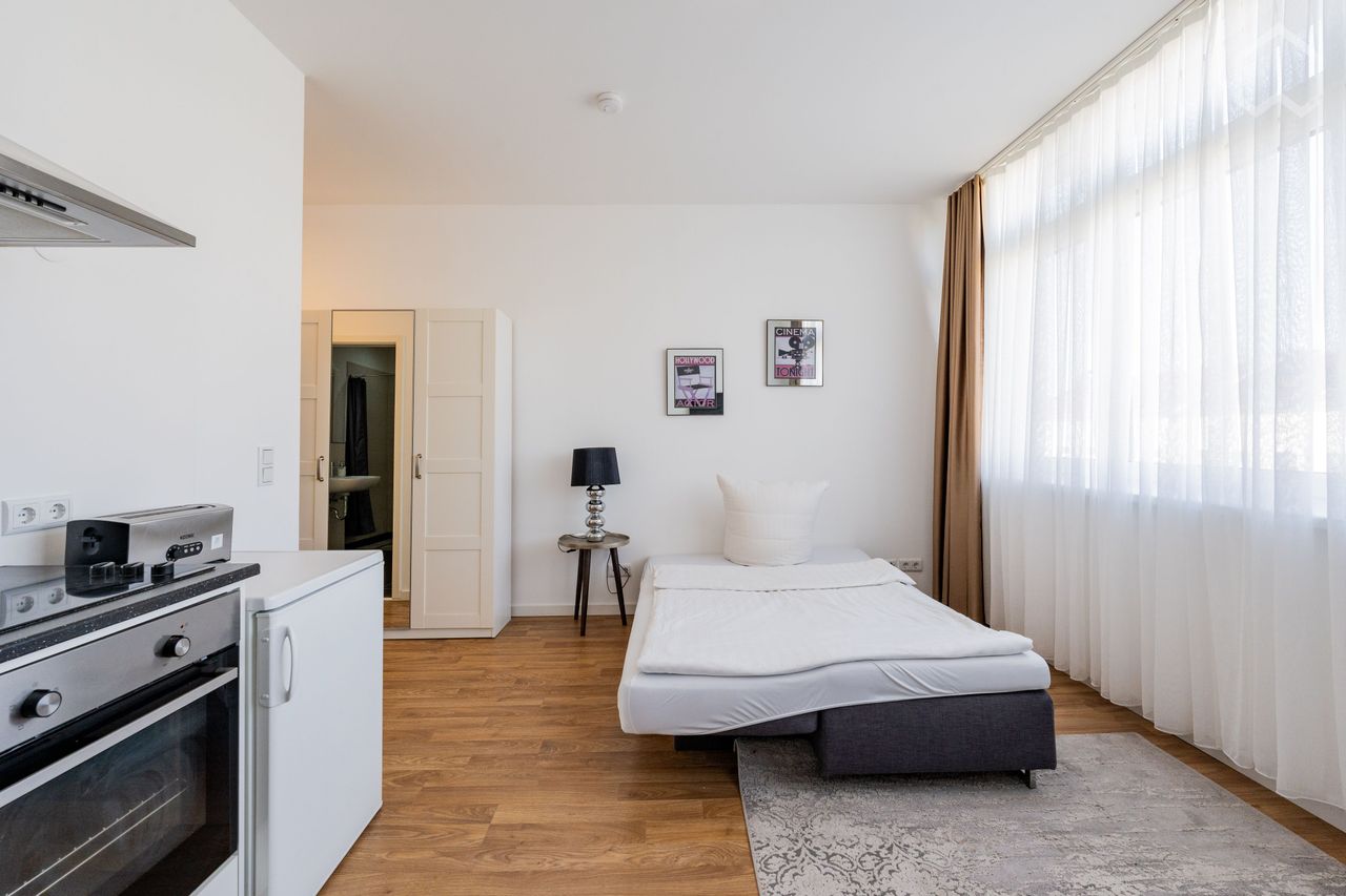 Please note: This is a discounted price due to the longer stay of 6-12 months. Our flats can also be booked for a minimum rental period of one month. This apartment with about 28 sqm is lovingly furnished and has the following equipment: A sofa bed (120 cm x 200 cm), a closet, a LCD TV, a TV board, a fitted kitchen with electrical appliances, a dining table with chairs, a coffee pad machine, cutlery, toaster, towels, bed linen, a charging station for your electric car Included, And a passenger ...